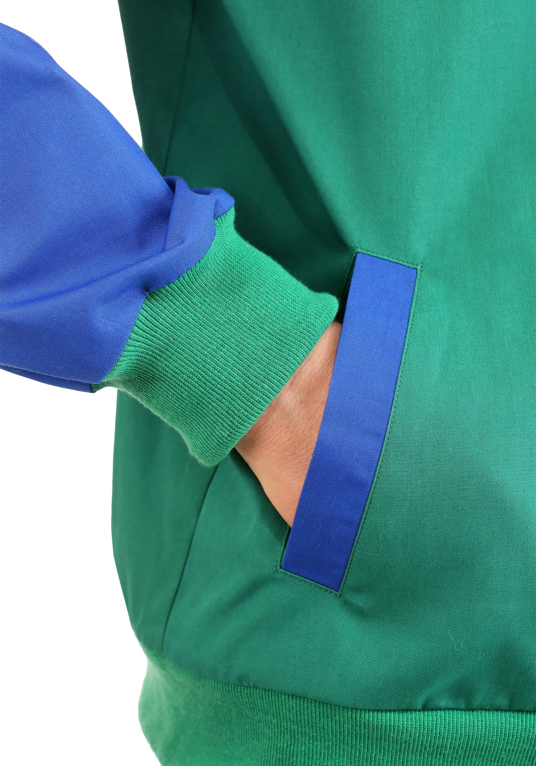 - Jacket has ribbed collar, sleeve cuffs & waistband