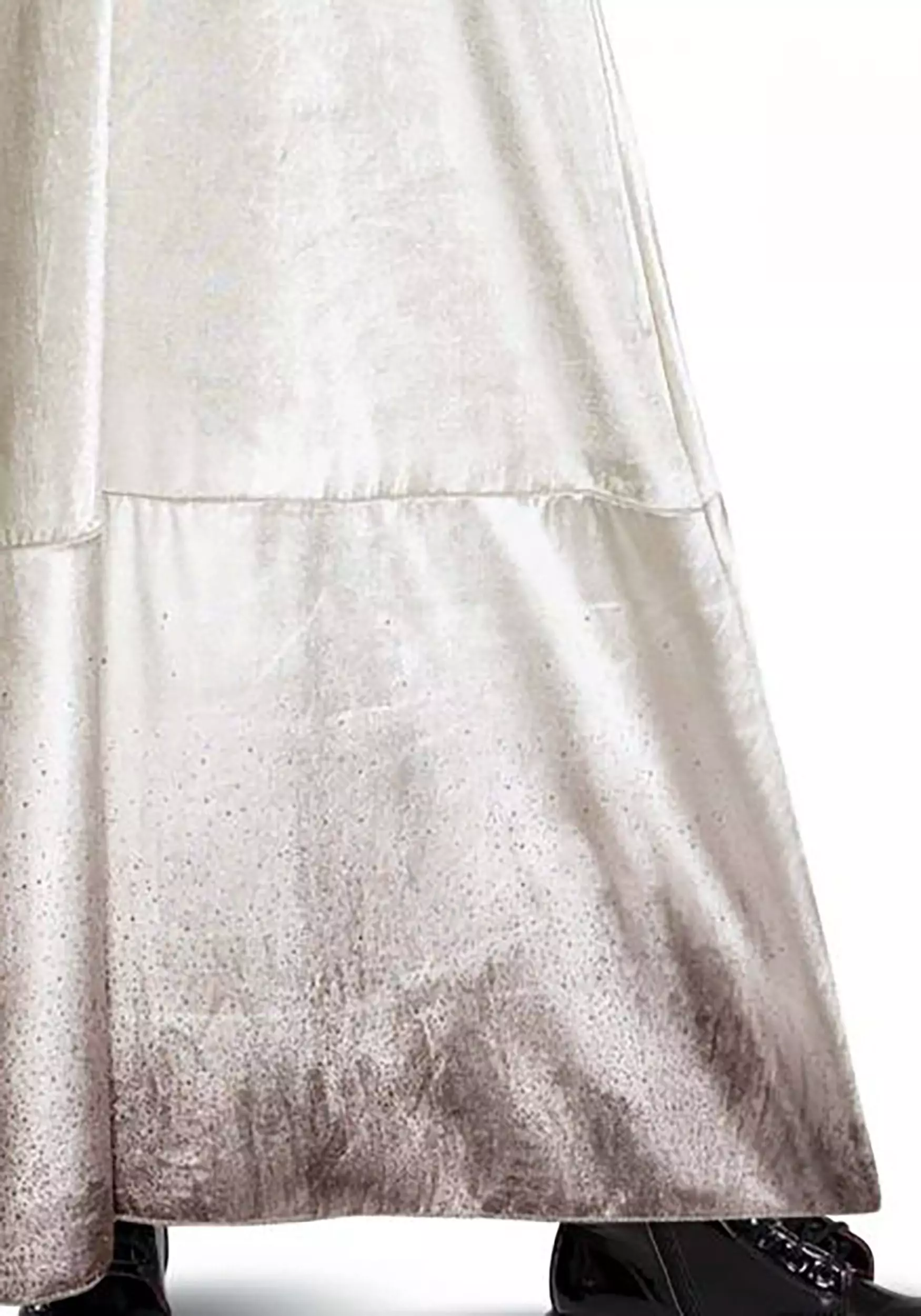 Become an icon among classic monsters with this officially licensed Monsters Deluxe Bride of Frankenstein Costume for Adults! The outfit includes a long gown made of soft, cream-colored velour. Small velour ruffles grace the shoulders, and the long sleeves are made of stretchy fabric patterned with gray stripes on a white background. Its attached gloves can be pulled back to expose your hands. The gown’s hem is a dark ombre resembling dirt stains. The included headpiece is made of curly black synthetic hair and features a silvery stripe up each side.Â