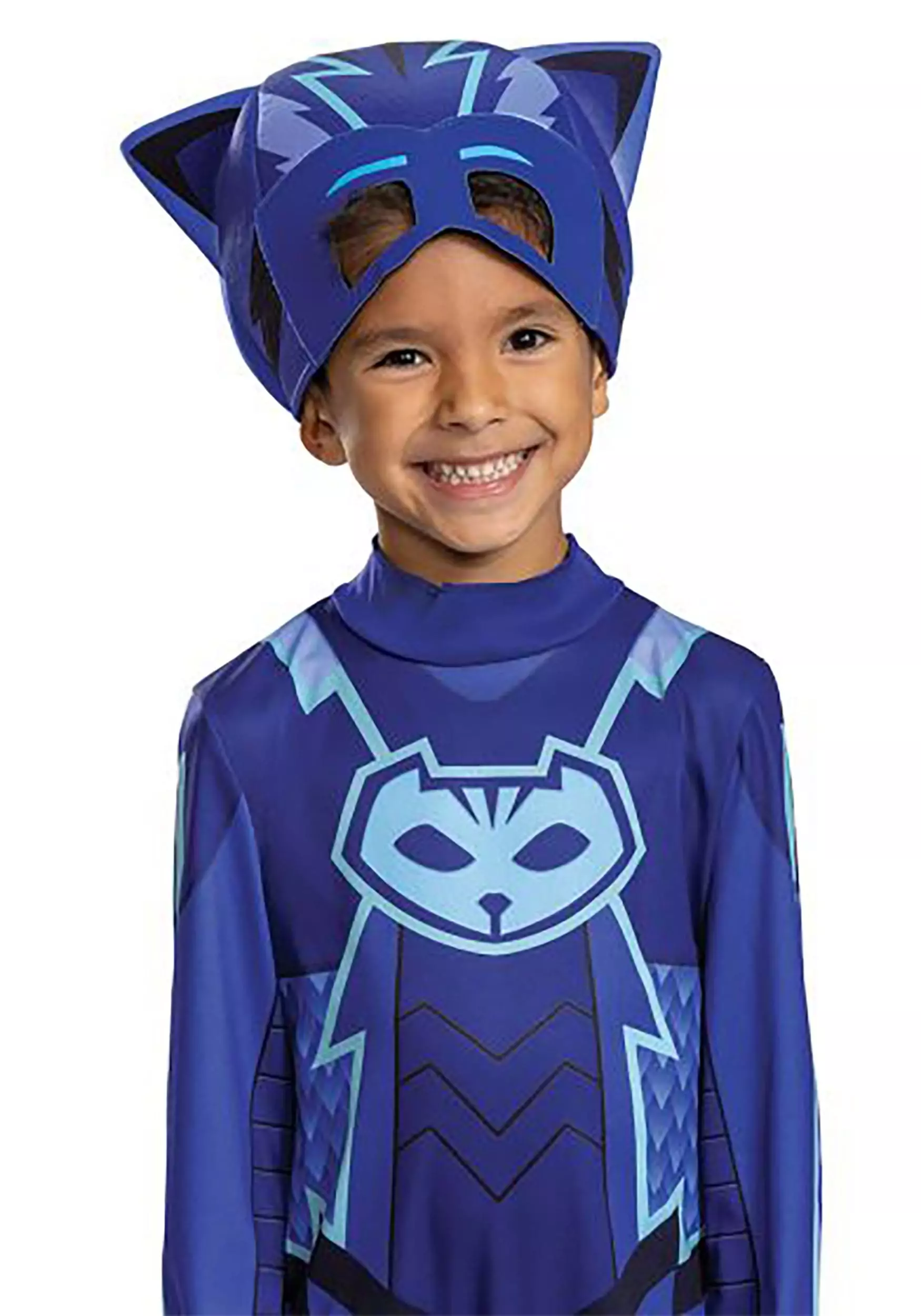Team up with Owlette and Gecko when you wear your officially licensed Toddler PJ Masks Classic Catboy Megasuit Costume! The one-piece blue jumpsuit fastens up the back and has long sleeves and legs. It’s printed all over with fun graphic armor details that make it look like Catboy’s famous megasuit. Catboy’s cat face symbol is printed in the center of the chest. A stuffed blue fabric tail is attached to the jumpsuit’s seat. The included mask conceals the upper half of your face and has holes for your eyes as well as upright ears.