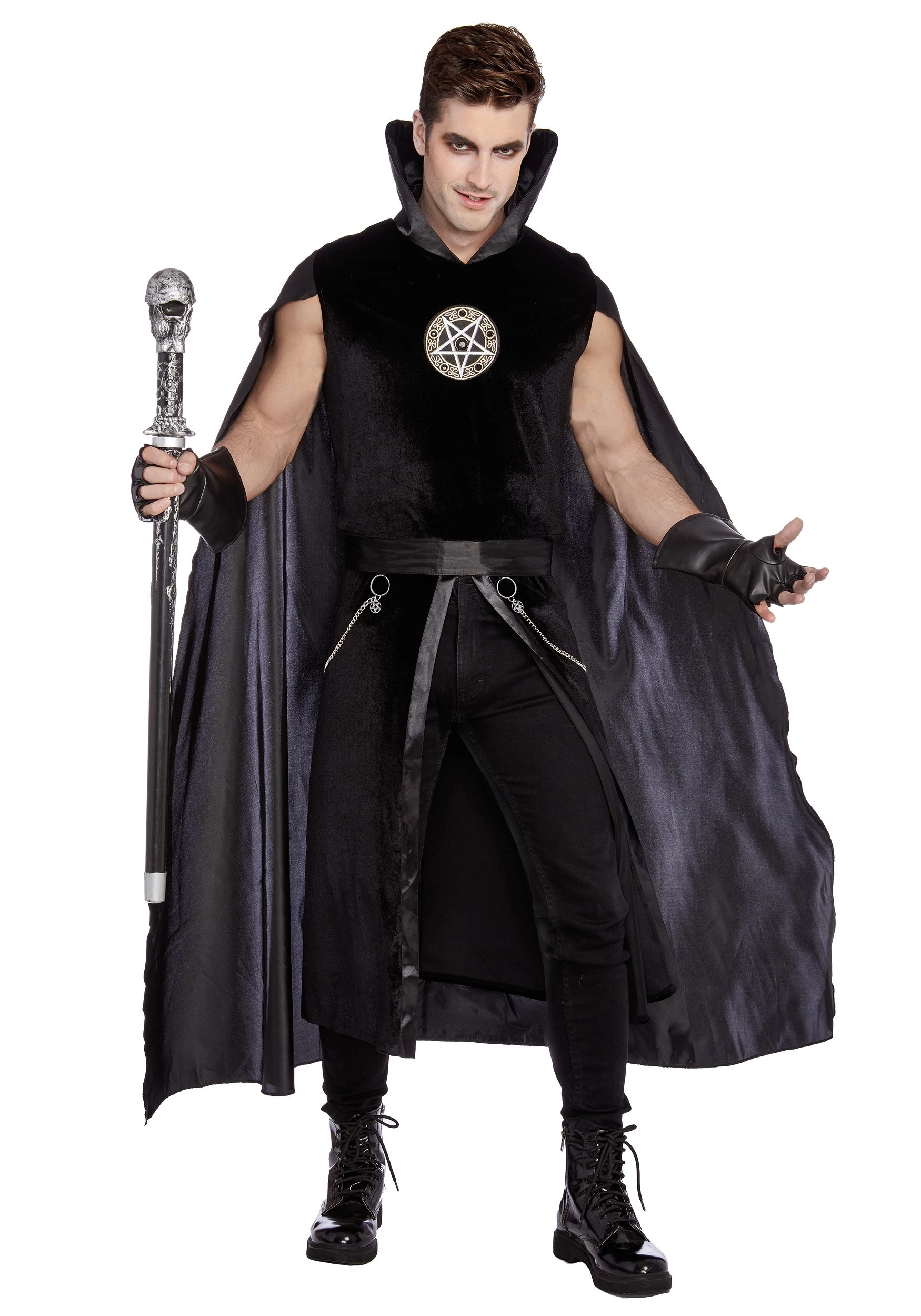 It would be a sin not to look fantastic while calling on all your magic. That’s why we’ve got this Sexy Prince of Darkness costume to help you on your way. The sleeveless tunic is perfect for flexing your mojo and the pentagram patch clearly shows where your power comes from. The long black cape features the iconic high collar that no devil would dare be without. Your belt has just enough accents to draw attention, too.Â