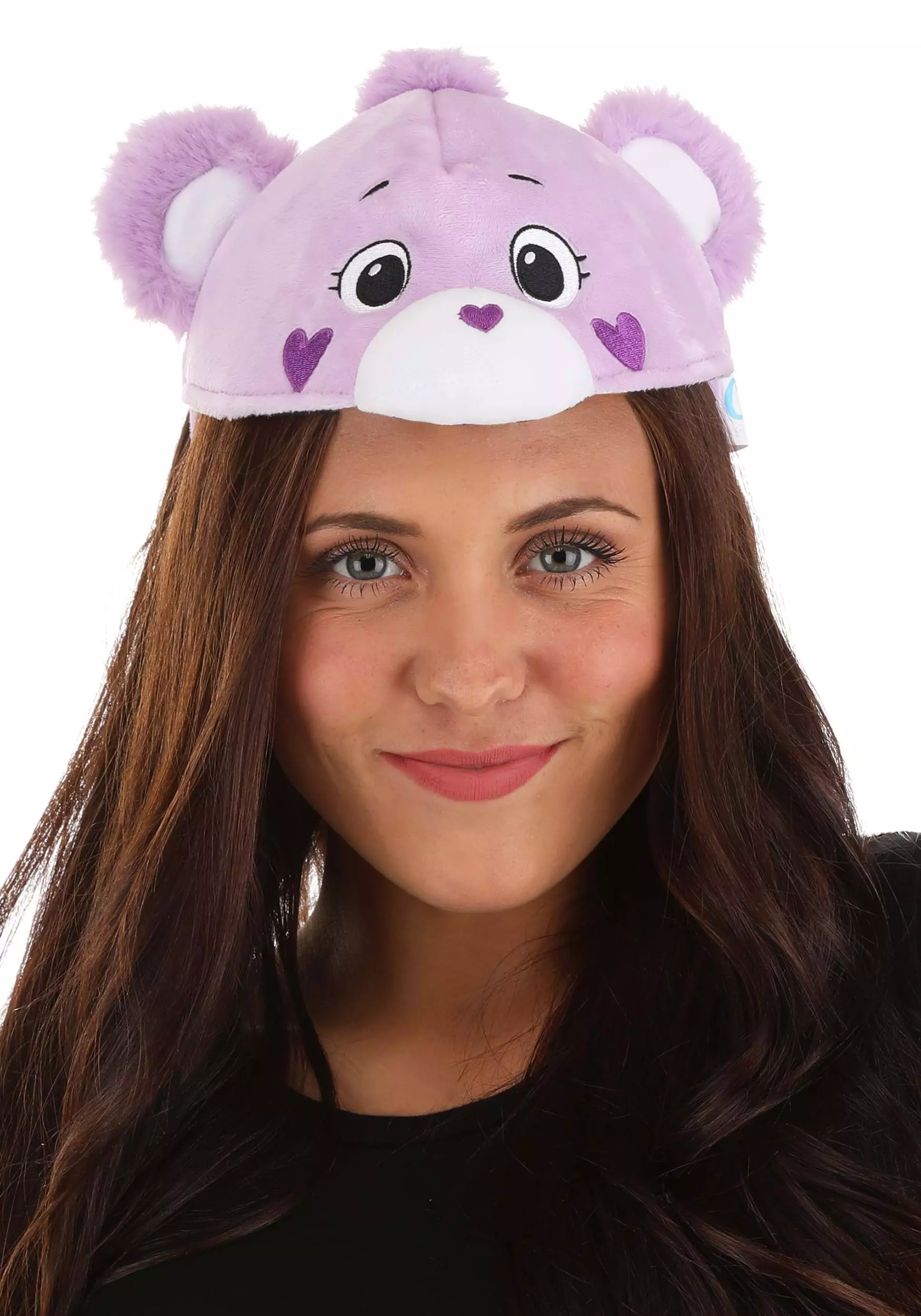 Turn a purple-hued outfit into an amazing Care Bear ensemble by adding this officially licensed Care Bears Share Bear Soft Headband! A fabric-covered plastic headband is fitted with an attached face panel that covers the top of your head and your upper forehead. Soft-sculpted ears and a muzzle as well as embroidered eyes and a heart-shaped purple nose give it the Share Bear’s well-known appearance. A purple faux fur tail is sewn to the back of the headpiece.Â