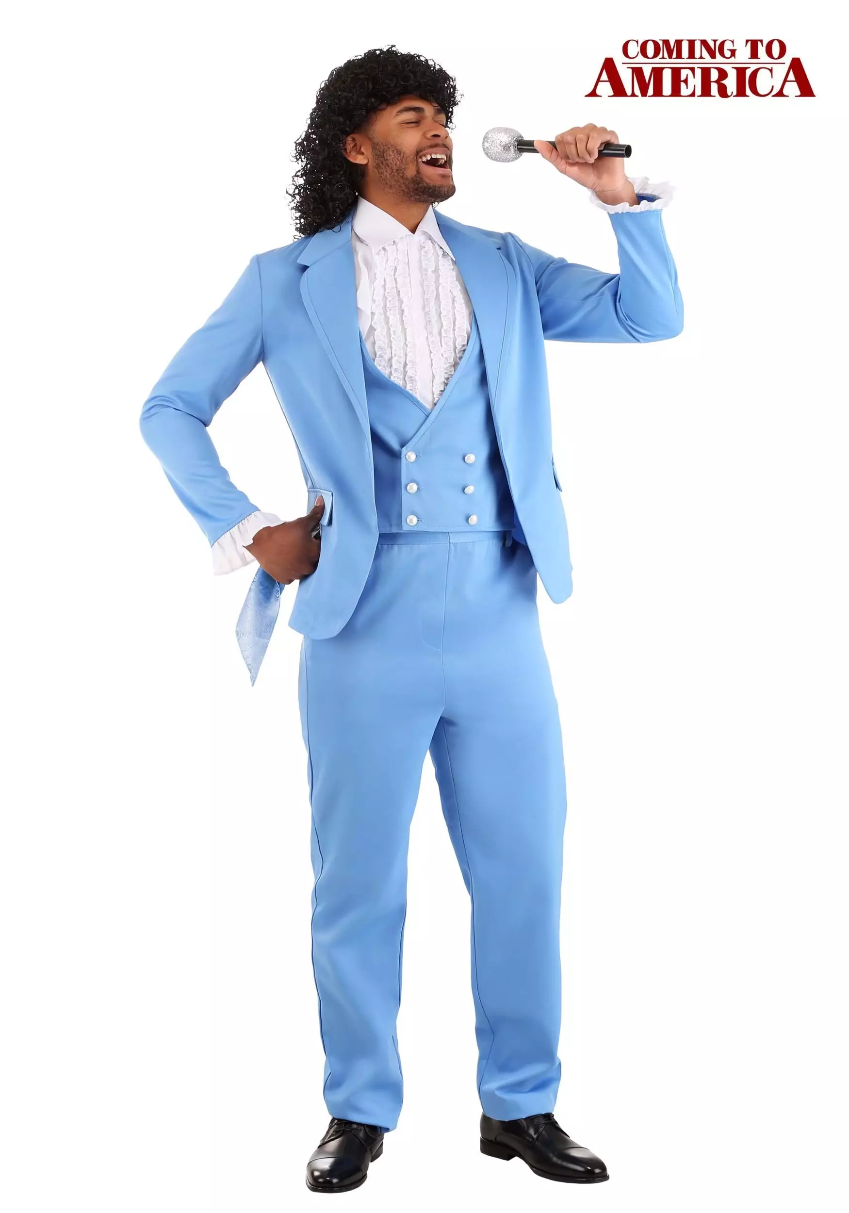 This officially licensed costume is inspired by the amazingly oblivious singer from Coming to America. It’s an exclusive, Made By Us design that you’ll only find here! This costume begins with powder blue jacket and vest, complete with ruffled cuffs attached to the jacket sleeves. The vest has buttons in front. The blue pants have an elastic back waistband for a snug fit. To finish the whole ensemble off, the costume comes with a ruffled shirt front, which fits underneath the vest. This gives you that sensual soul singer kind of vibe, perfect for taking the stage at any event! You’ll be ready to grab the microphone and own the stage in no time!