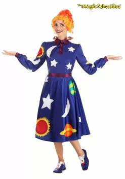 Of course, the first part of stepping into this role of a lifetime is getting your hands on this officially licensed Deluxe Ms. Frizzle costume! Our Made By Us team has been enthralled by all things Magic School Bus forever, so it is a delight to bring this entire ensemble to you! You’ll step into the role of the fantastic Frizz’ with a shirtwaist dress that secures neatly with a trio of buttons in the front. The dark blue dress features an array of stars and planets printed so you’ll not only have the look of the tremendous teacher but the texture to boot! A pair of earrings clip to your lobes and feature long, dangling chains that end in a shiny planet with a bright red ring. Whether you’re twirling about and demonstrating all the wonders of the world or thinking up a clever way out of the trouble you introduced everyone into, this iconic look will make you feel just as animated as we know you are!