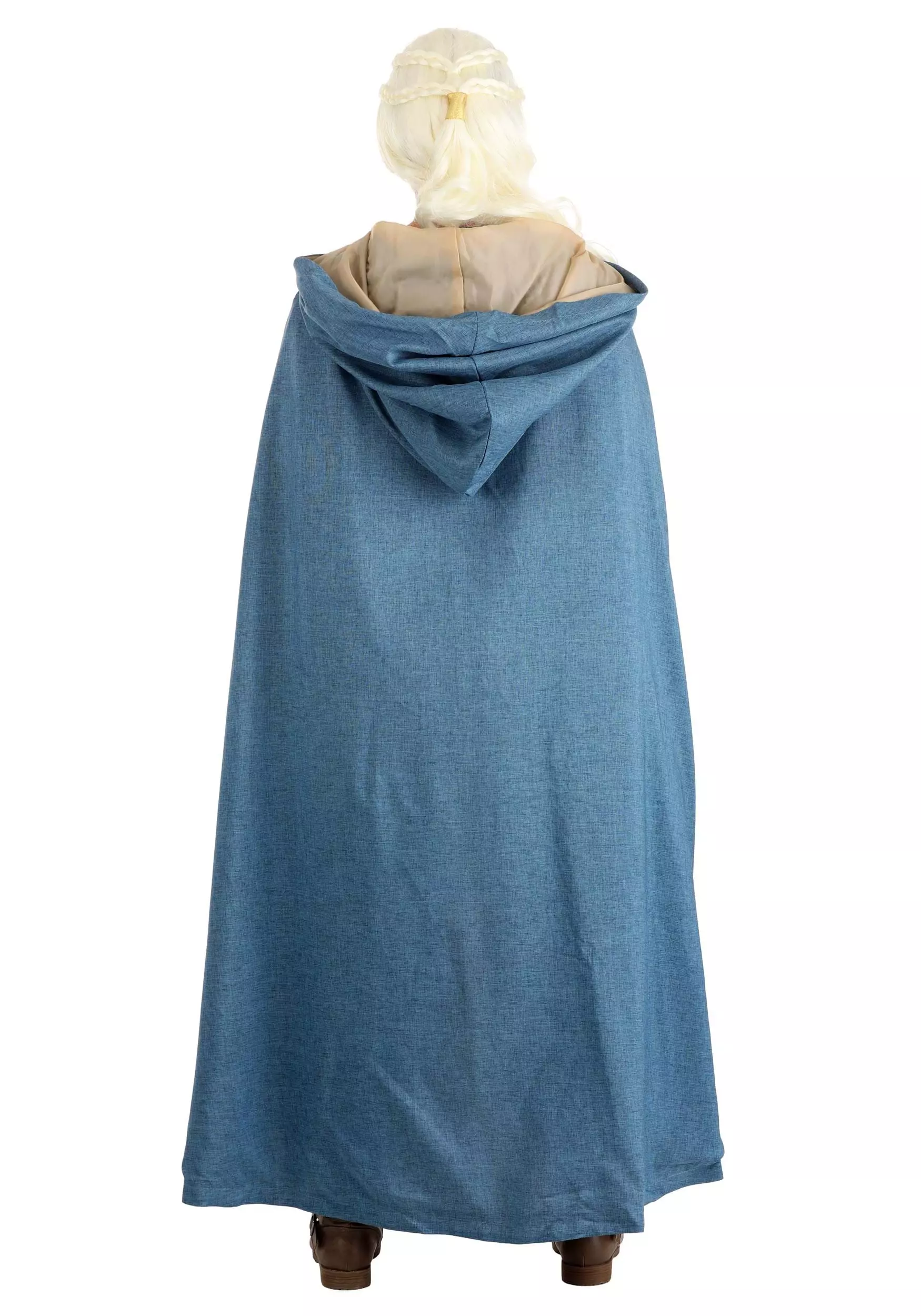 Designed in our costume studios, we made this Dragon Queen costume to stand above all others. Styled as a tunic and cape combination, with included leggings, this ensemble will give you the style of a true warrior princess—but not that one. The rich blue fabric has a heavy linen look and feel, and the cape secures around the neck so you can wear it as desired. Just pick up our Dragon Queen wig and some stylish boots (sold separately), and you too will be ready to rule!Â