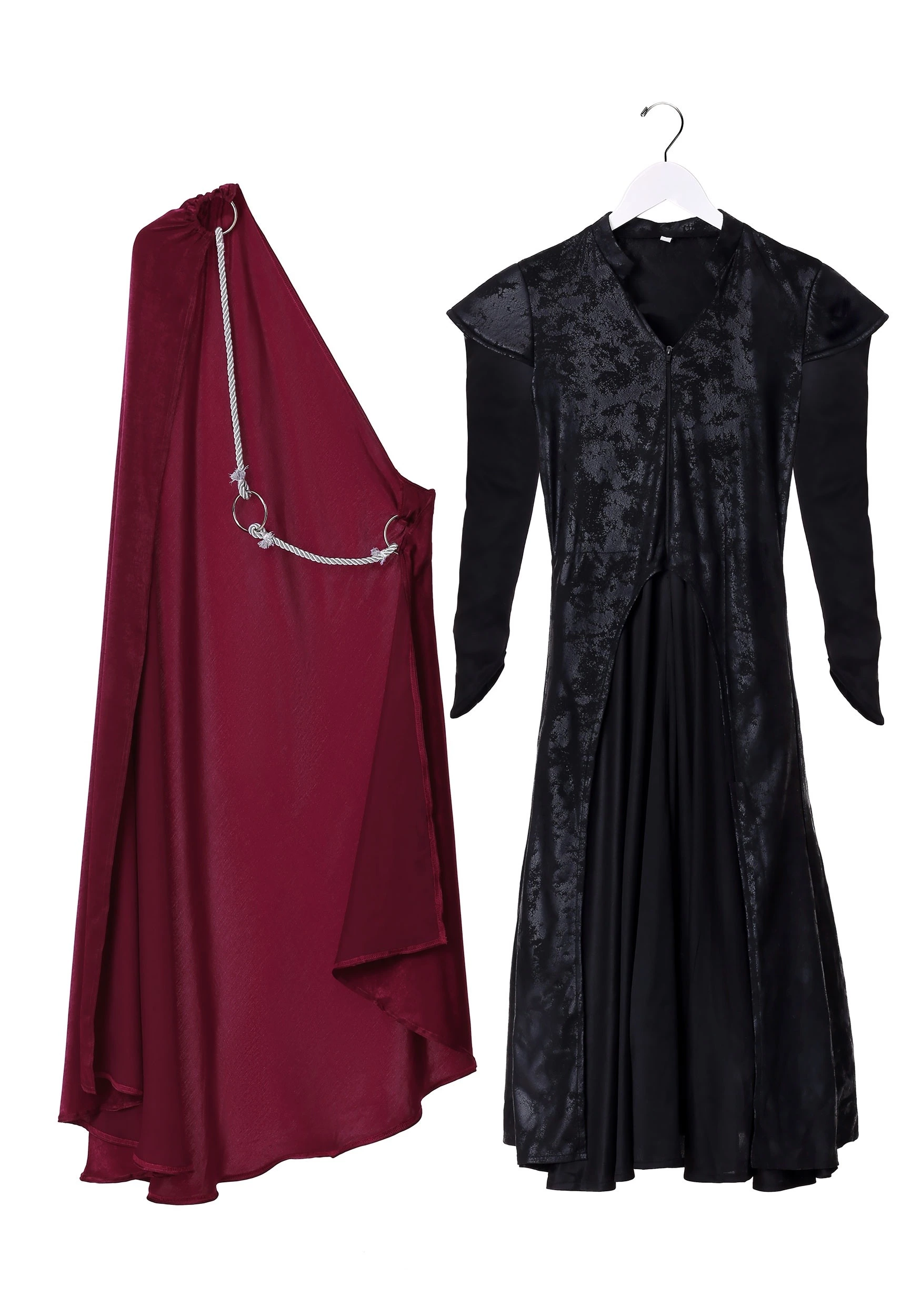 - Cape has silver cord w/ metal O-rings to sling over shoulder