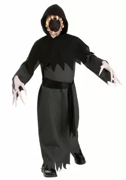 You might not be able to wear this every day, but bringing your signature flair to the way you dress is cooler than ever with this Kid’s Faceless Nightmare Costume. This “Made By Us” costume was put together by our hard working and careful artisans, so you will feel good about wearing this for years to come. The included hood, mask, robe, and gloves are all you need to bring the faceless monster inside you to life. The molded mask has a mesh center, along with gruesome and cool teeth that jut out at odd angles. The long-fingered gloves and tattered hems of the costume give it that extra bit of spooky flair that will make you feel like the scariest nightmare there is!