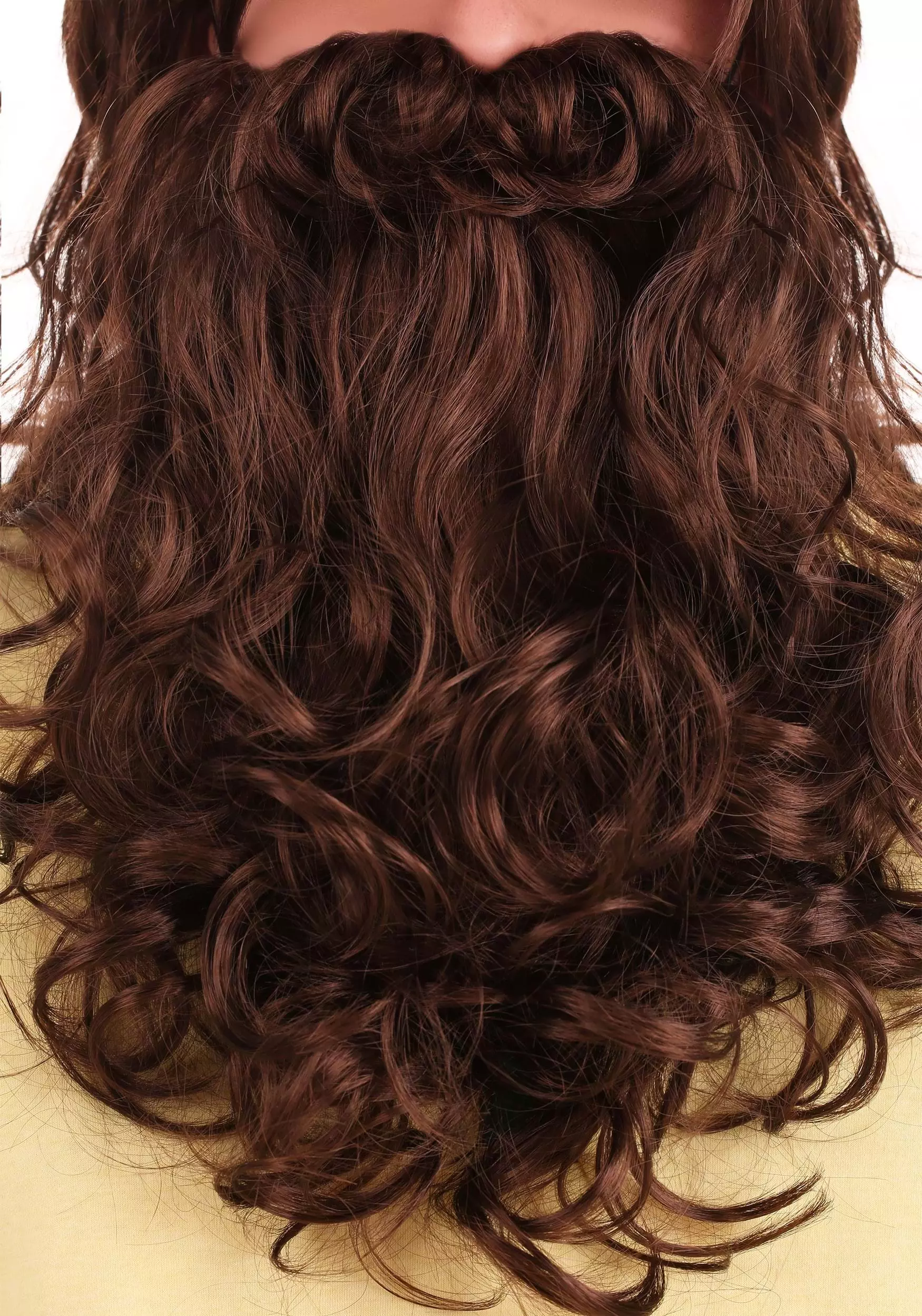 - Wig & beard are synthetic hair on mesh backing; elastic bands around back of head
