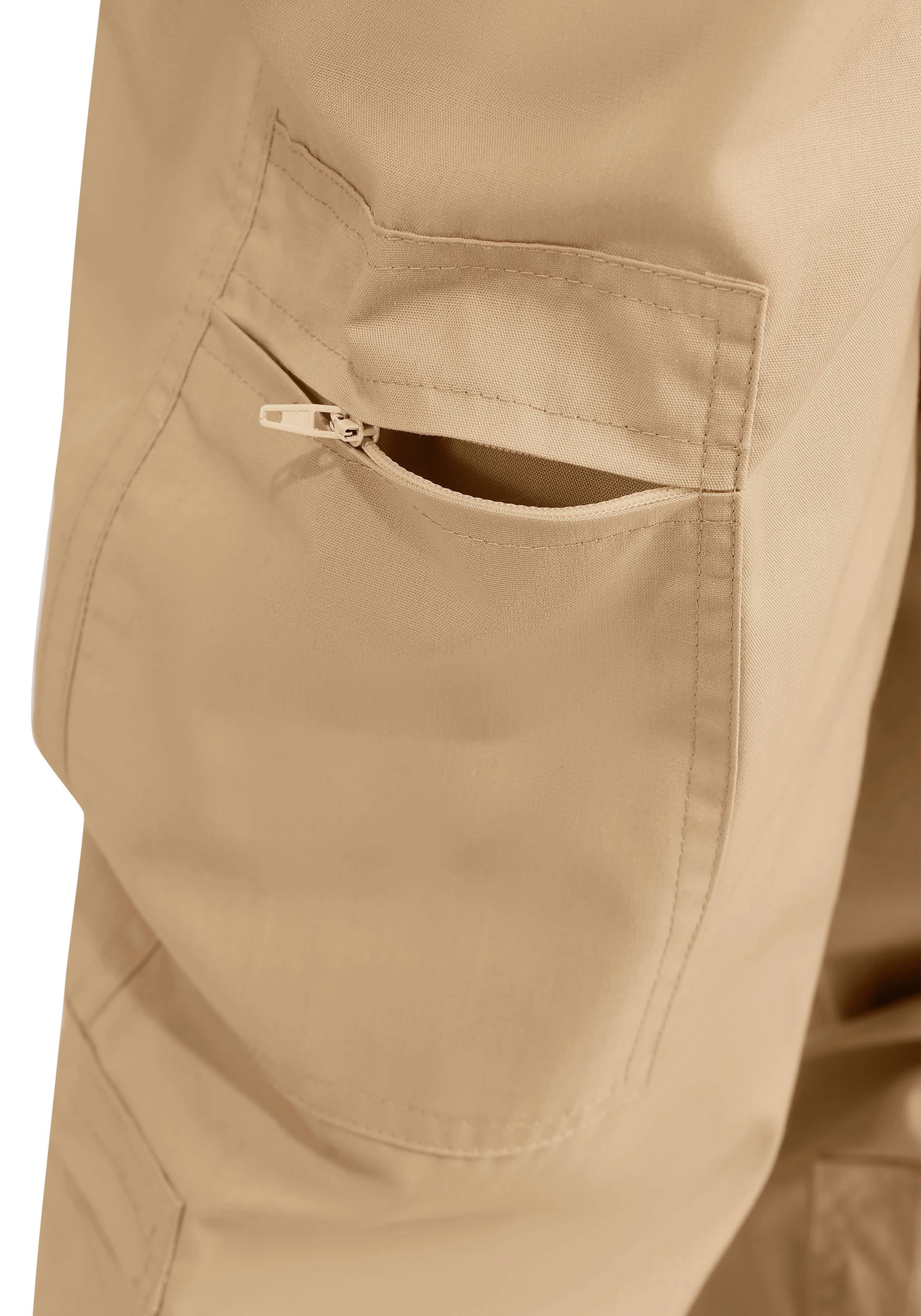 - Jumpsuit has front zipper closure and zippered pockets on front