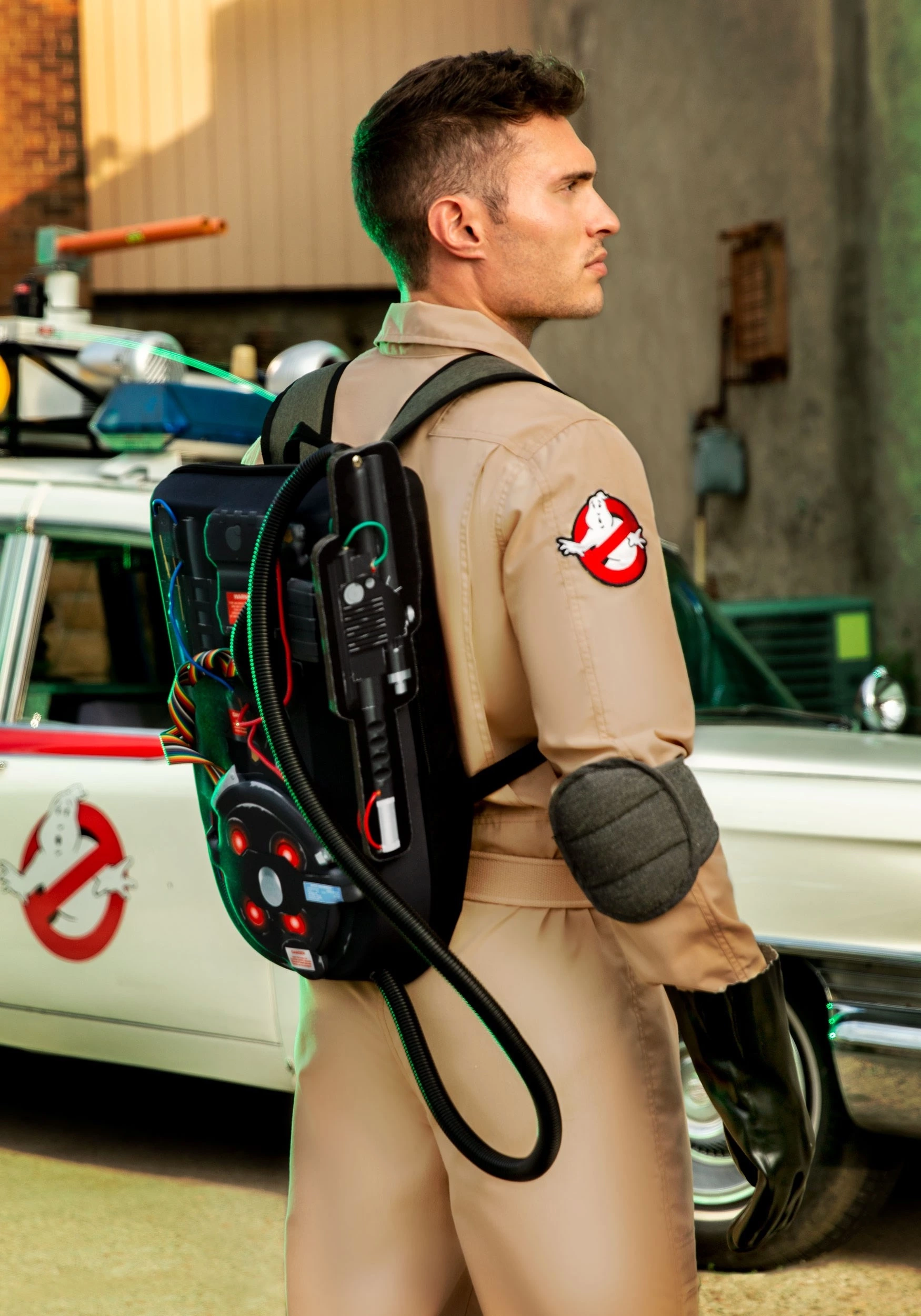 - Embroidered Ghostbusters patch sewn on right arm of jumpsuit