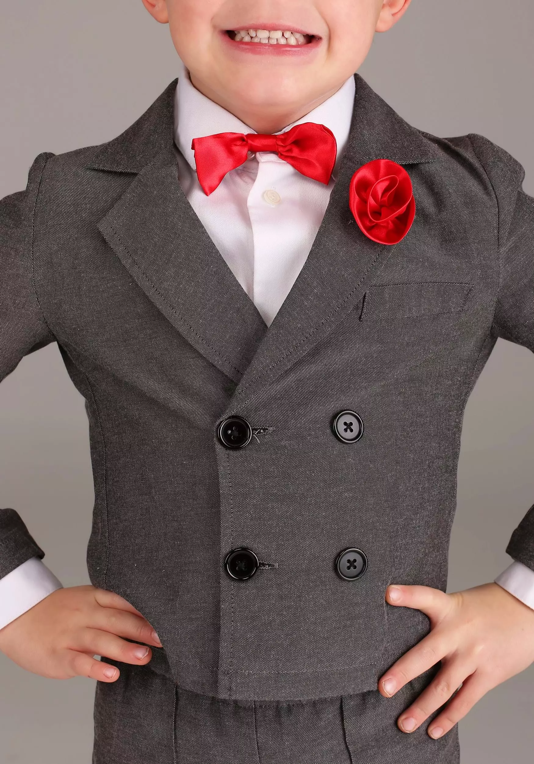 Give life not only to the most famous ventriloquist doll out there but to your kiddo’s favorite stories with this officially licensed Goosebumps Slappy costume for toddlers. This is a Made By Us ensemble that we brought to life out of our love for spooky stories. It includes a pair of pants, a jacket, and the iconic bow tie that Slappy couldn’t live without! The jacket buttons up the front and features a bright flower on the lapel that matches the red bow tie. The pleated pants match the jacket and will have your kiddo looking professional, spiffy, and just like Slappy once you apply some simple face paint!Â