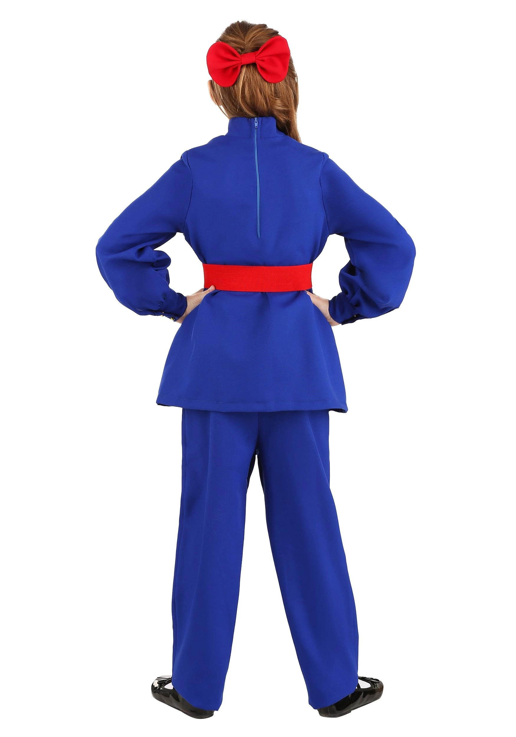 You’ll blow everyone away with this exclusive Kids Gum Chewing Ticket Winner Costume of ours. The 100 percent polyester costume comes with a blue pullover shirt and matching pants. The shirt has gold buttons on the front and on the cuffs, while there’s also a wide elastic red belt with a gold metal buckle for the pants. The costume also comes with a woven polyester hair bow with a clip on the back. Best of all, the whole ensemble is part of our Made By Us collection, meaning our own designers created every facet, so you can worry less about the stitching and more about where to find the best candy at your next costume party.