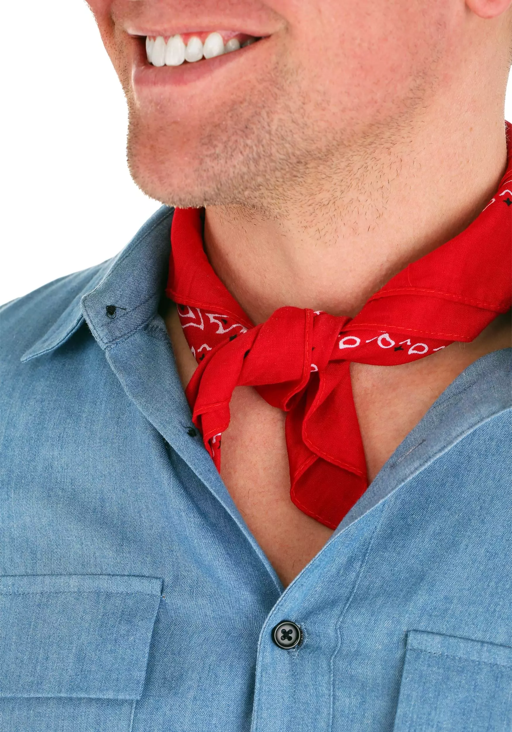 - Shirt: 68% cotton, 32% polyester, bandana: 100% polyester, chambray fabric