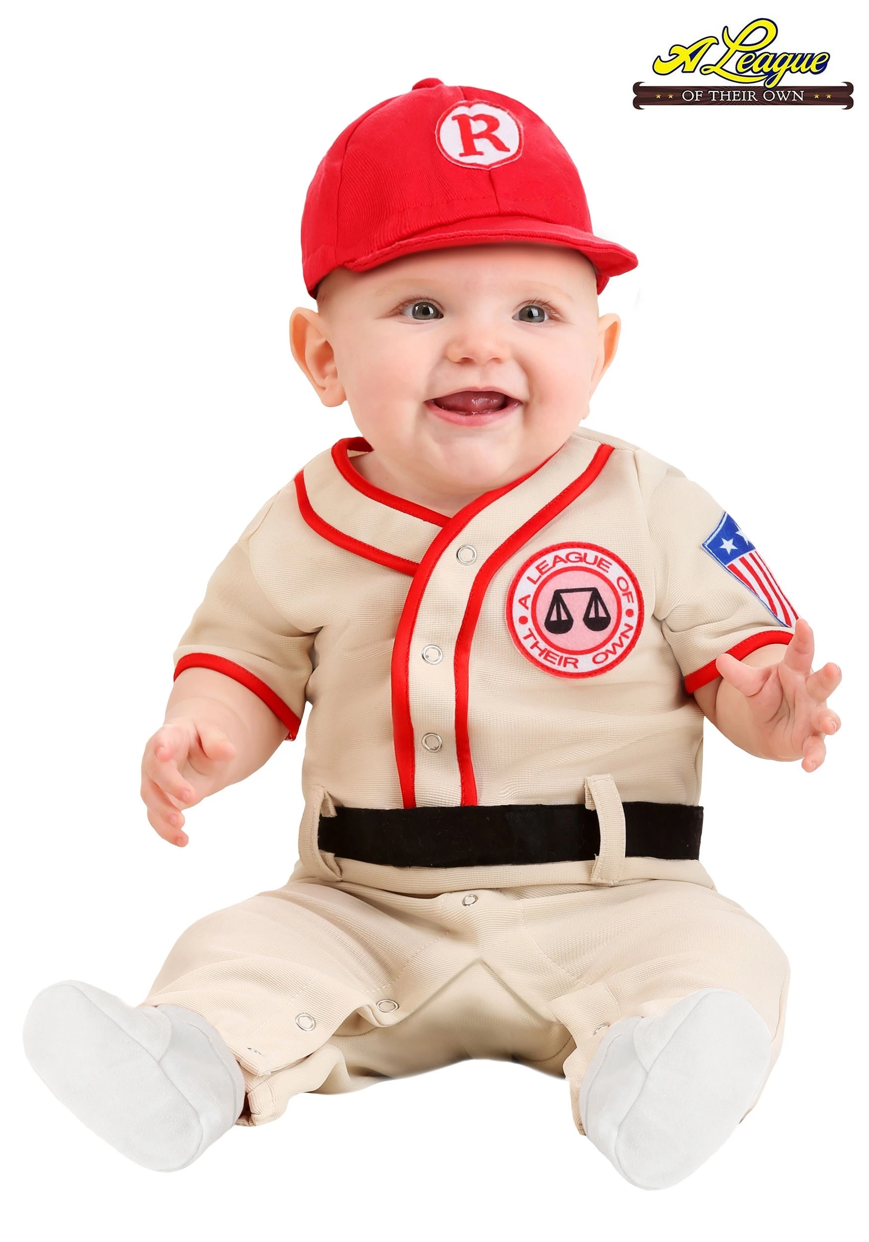 Your little one will be ready to call the shots in this exclusive League of Their Own Infant Coach Jimmy Costume. The Made by Us ensemble is simple and stylish with its 2 piece design. You’ll have no trouble getting your little one in and out of the onesie with its snap closures. And the detailing is spot-on to the look of the Rockford Peaches infamous coach. Red piping along the top buttons and sleeves give this onesie an authentic look, while an embroidered A League of Their Own badge marks this costume as a winner. From the embroidered R on the bright red baseball cap to the belt around the middle, this costume for your little leaguer is a homerun!