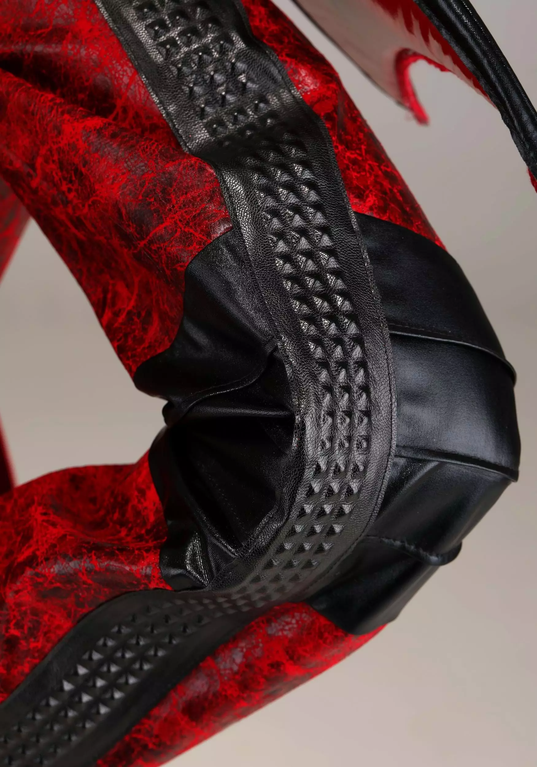 - Red faux patent leather collar, horns, tail and wing body