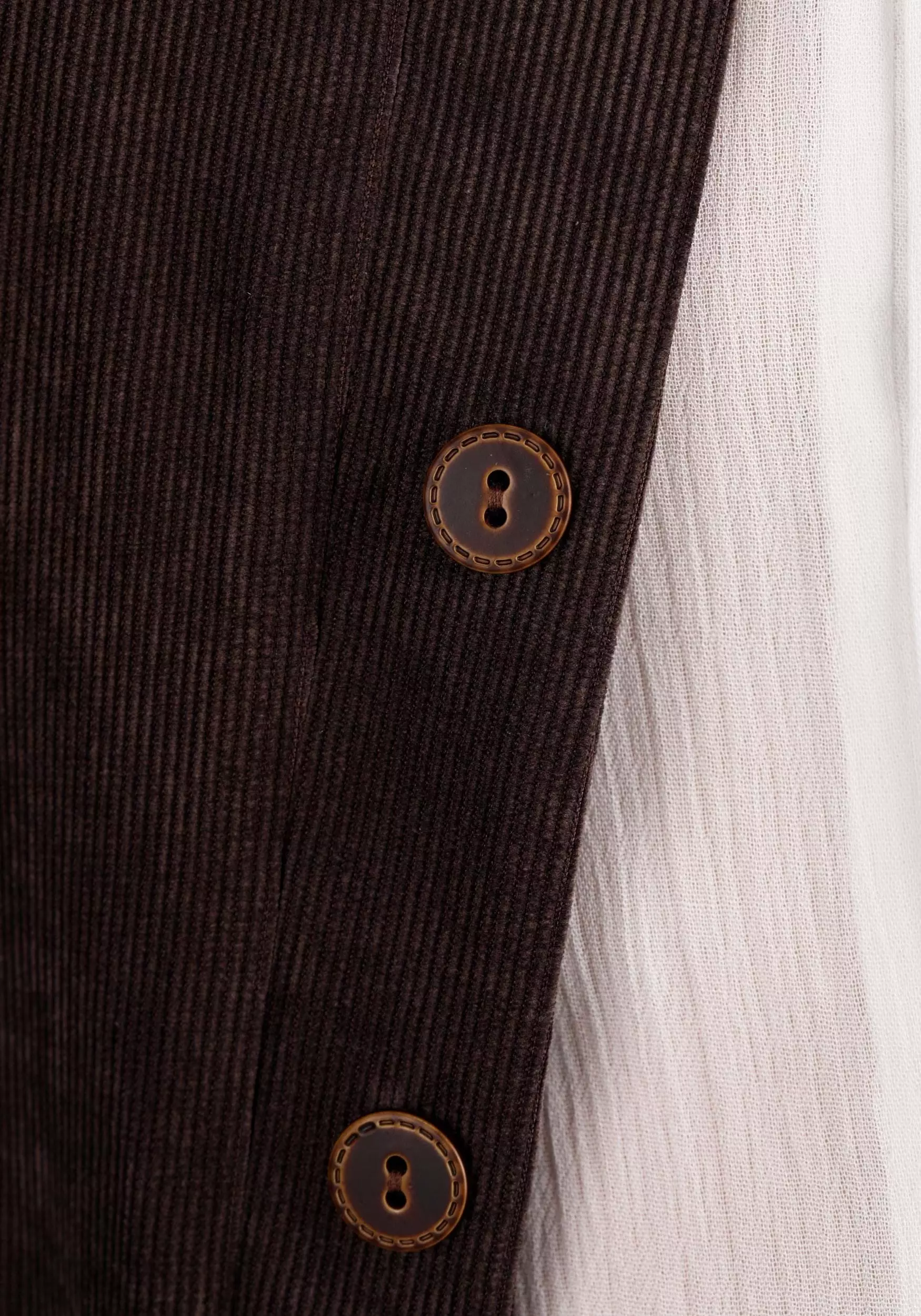 - Corduroy vest has buttons at center front, large patch pocket on each front panel