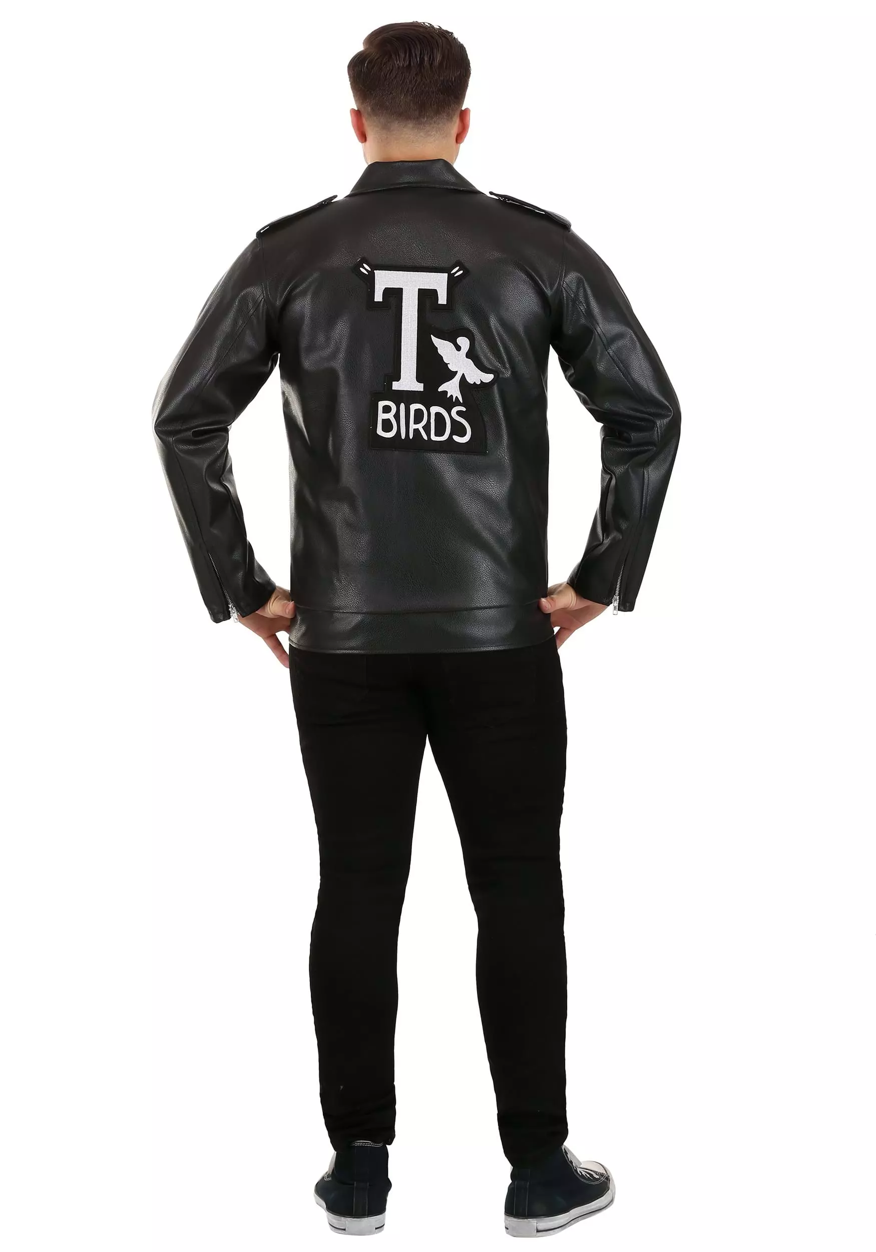 This authentic T-Birds jacket will have you well on your way to impressing one of the Pink Ladies! Just show up to the carnival wearing this Grease authentic T-Birds jacket and hang out at the fun house until you see Sandy. The jacket is made of faux leather material and it even has the T-Birds symbol printed on the back, so you can get the bad boy style of Danny Zuko with ease. Just make sure you slick your hair back for that full greaser look.