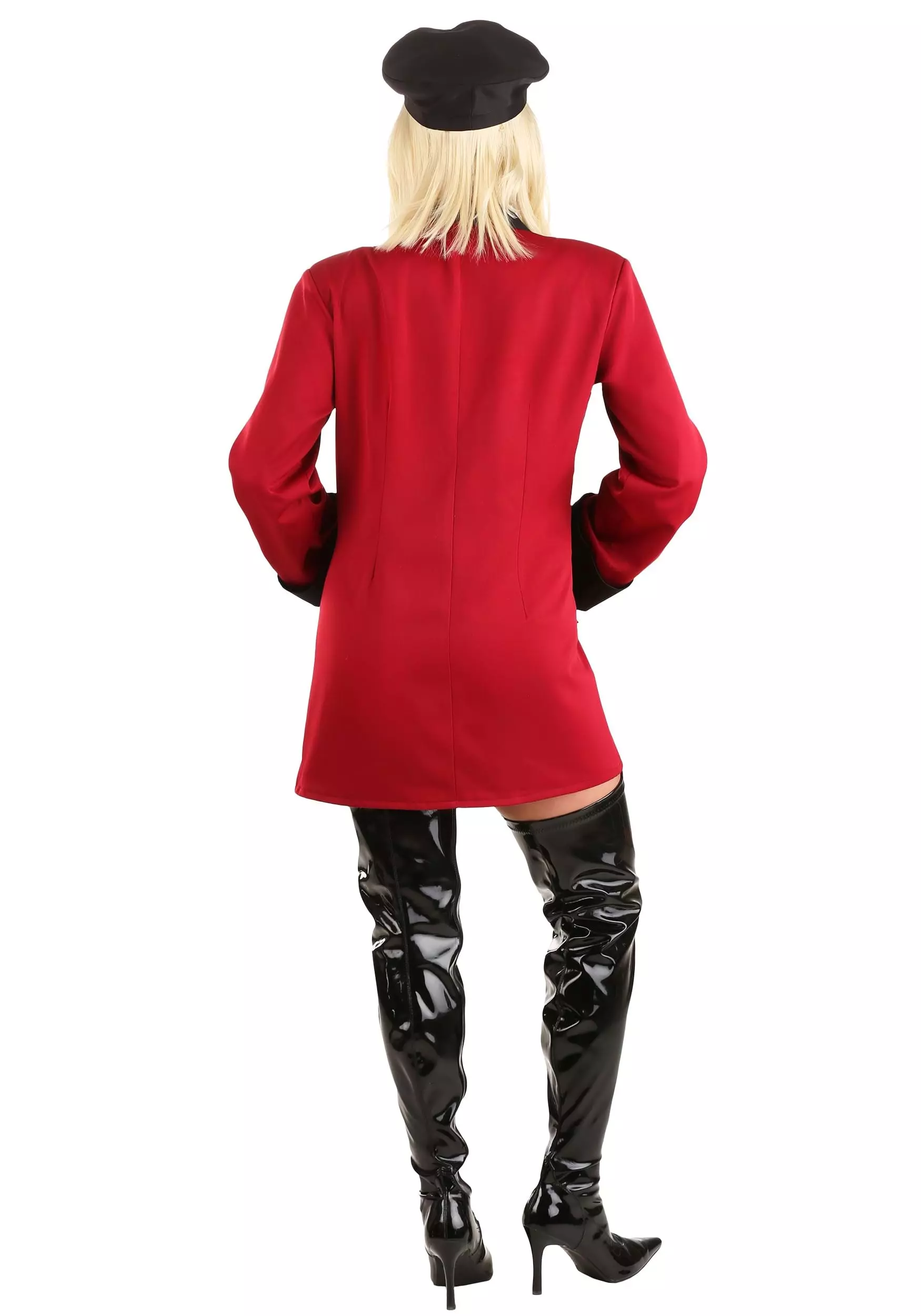 Our in-house designers were definitely feeling nostalgic for the 90s when they created this exclusive, cinematic look. It’s a body-hugging cutout dress, with a white bodice and blue mini skirt, attached by a simple silver ring in front. The oversized red blazer screams 90s style, as it features a big black lapel and matching cuffs and pocket trim. The included sailor-style black hat tops your bob wig (not included) perfectly! Add thigh-high black boots in shiny faux leather for full effect, and watch the whole city turn its head when you walk by.