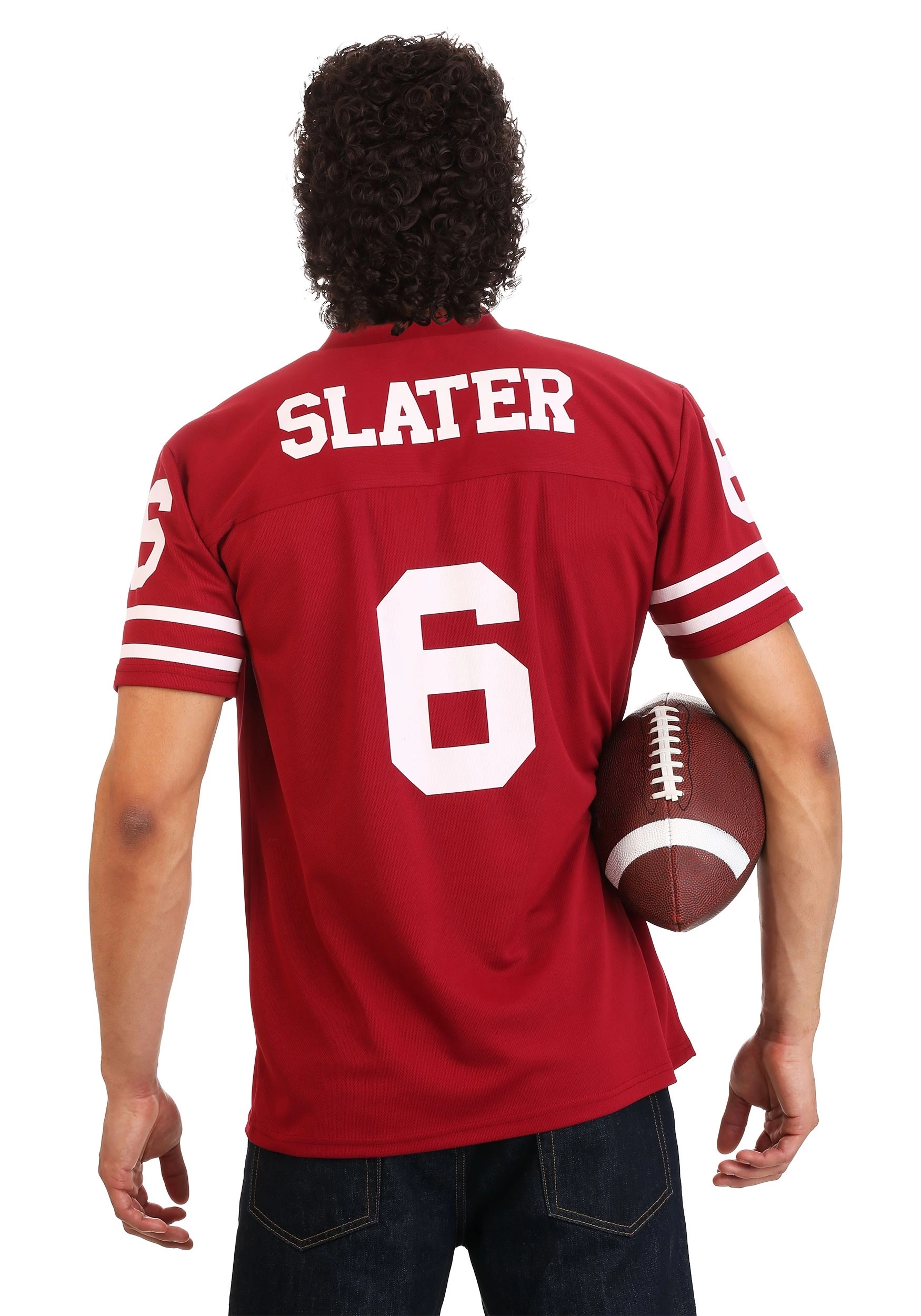 Slip on A.C. Slater’s iconic football jersey to transform yourself into the popular Saved by the Bell character with this officially licensed costume. The short-sleeved red jersey is colored with Bayside’s school colors—red and white—and features both the text of the school and Slater’s #6. The left shoulder has a patch of the Bayside Tiger mascot as well. Complete your look with a bit of a macho attitude and that recognizable Mario Lopez short, curly hair.Â