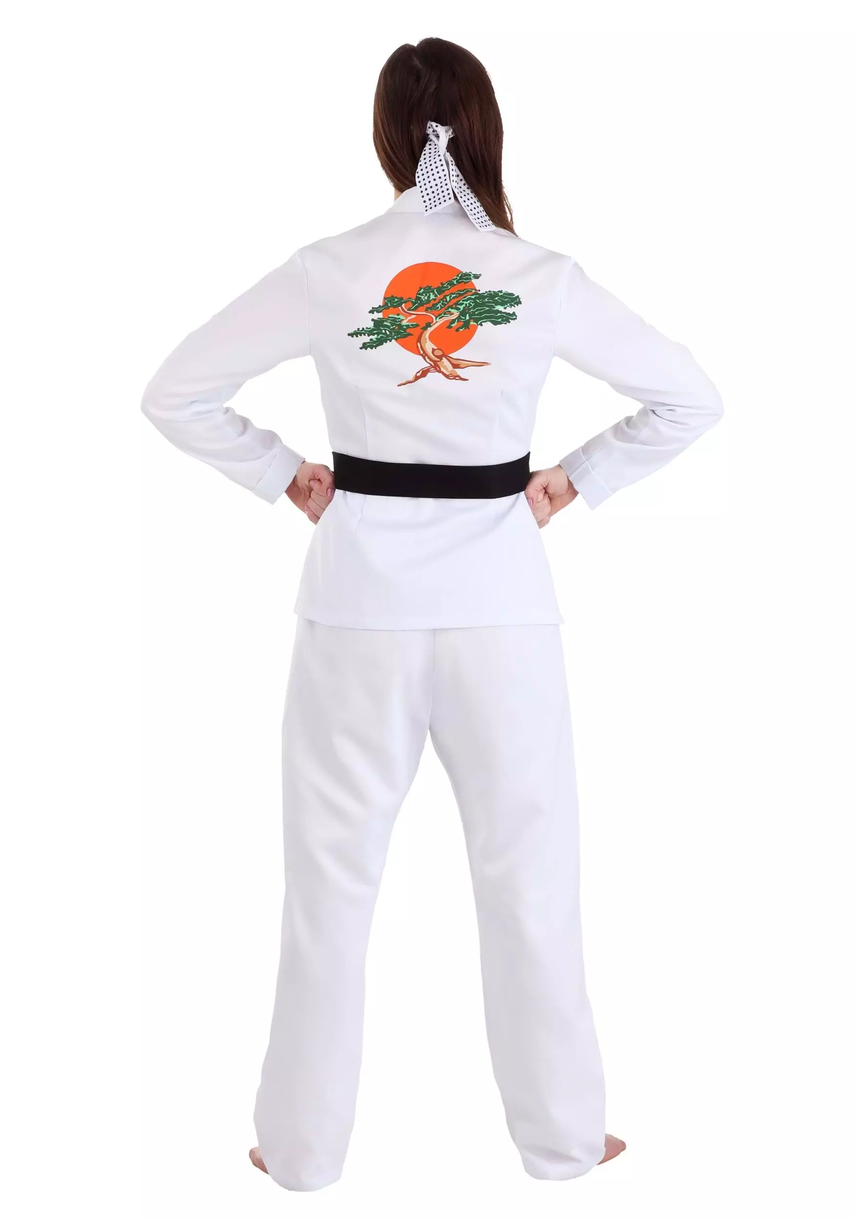 Learn an ancient art and defeat your bullies when you wear this officially licensed Women’s Karate Kid Daniel-San Costume! The exclusive replica karate gi is made of comfortable white fabric that’s perfect for trying the crane pose. It includes a long-sleeved top that’s printed on the back with an image of a bonsai tree in front of an orange sun. The matching pair of ankle-length white pants that have a stretchy waistband. Tie the included black belt around your waist and hold your hair back with the white headband!Â