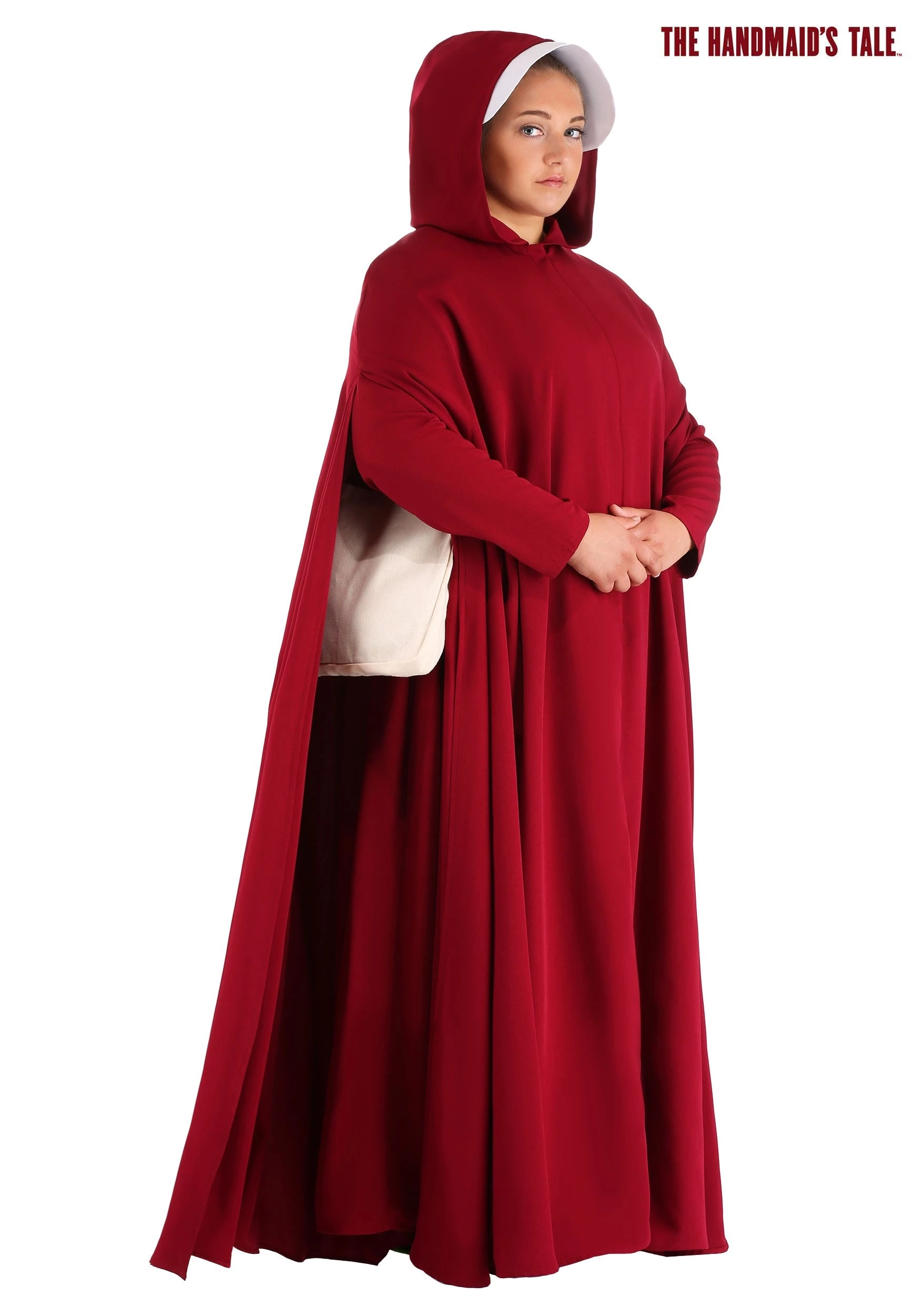 Inspired by the Hulu series, The Handmaid’s Tale, this women’s plus size costume captures the look of the signature uniforms worn by Handmaids. The exclusive design includes a crimson red dress and a cape. The cape features an oversized hood, so it fits easily over the 2-part bonnet. Finally, the costume comes with an off-white satchel that fits around your shoulder. The whole ensemble does a great job of making you look just like Offred, so you can secretly try to sabotage plans of the Gilead!