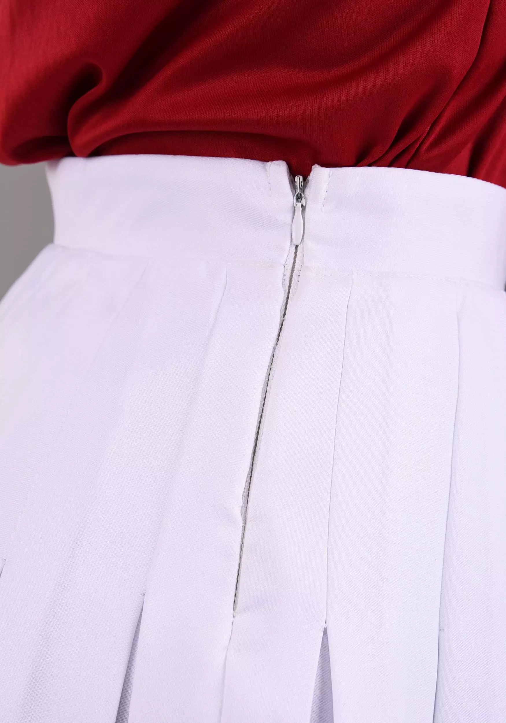- Zipper down the back of the skirt