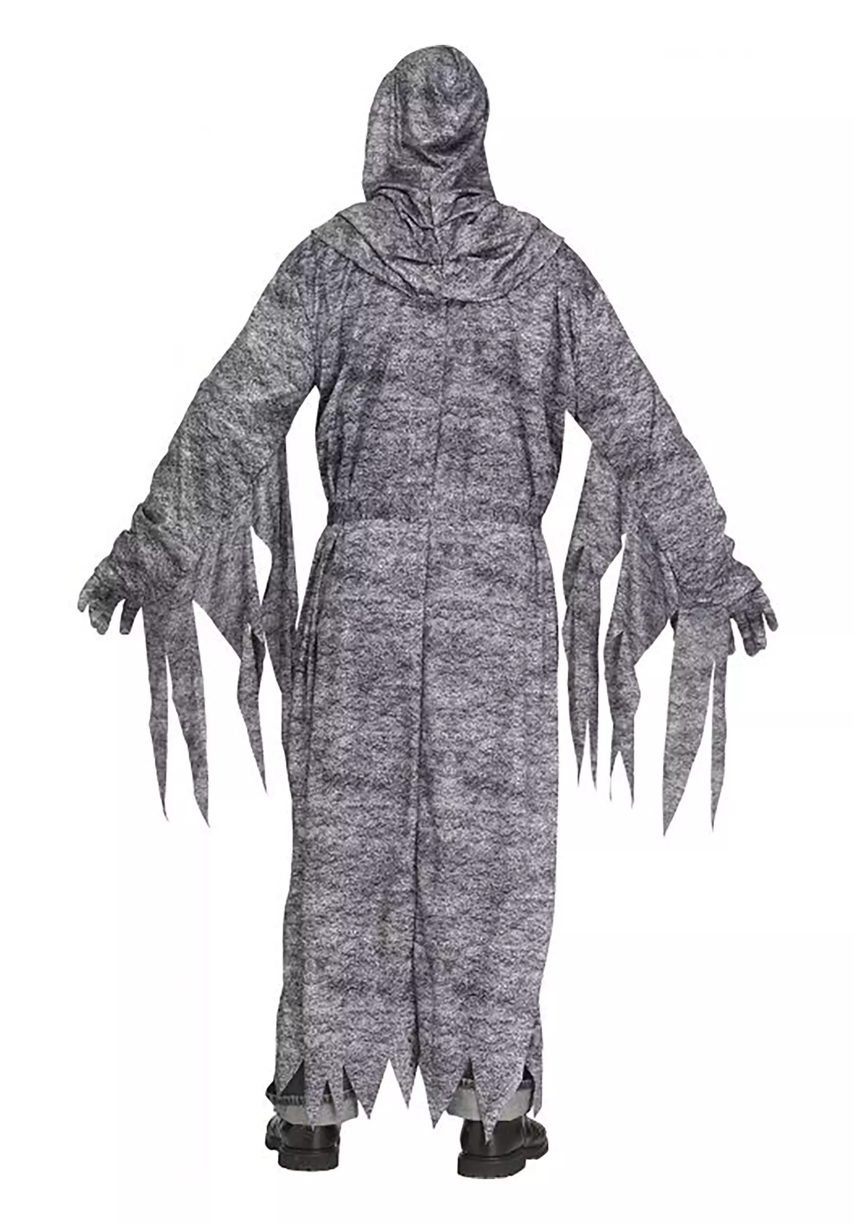 Scare your friends straight in this Men’s Stone Reaper Costume! The outfit includes an ankle-length robe patterned with a gray stone design. Same-fabric streamers sewn to the bottom of each sleeve give it a ghostly effect, as does the jagged hemline. The cowl collar complements the hood, and the same-fabric belt can be tied around your waist. The vinyl stone-colored mask is molded to resemble a spooky skull. Mesh-covered eye holes allow you to (sort of) see where you’re going.