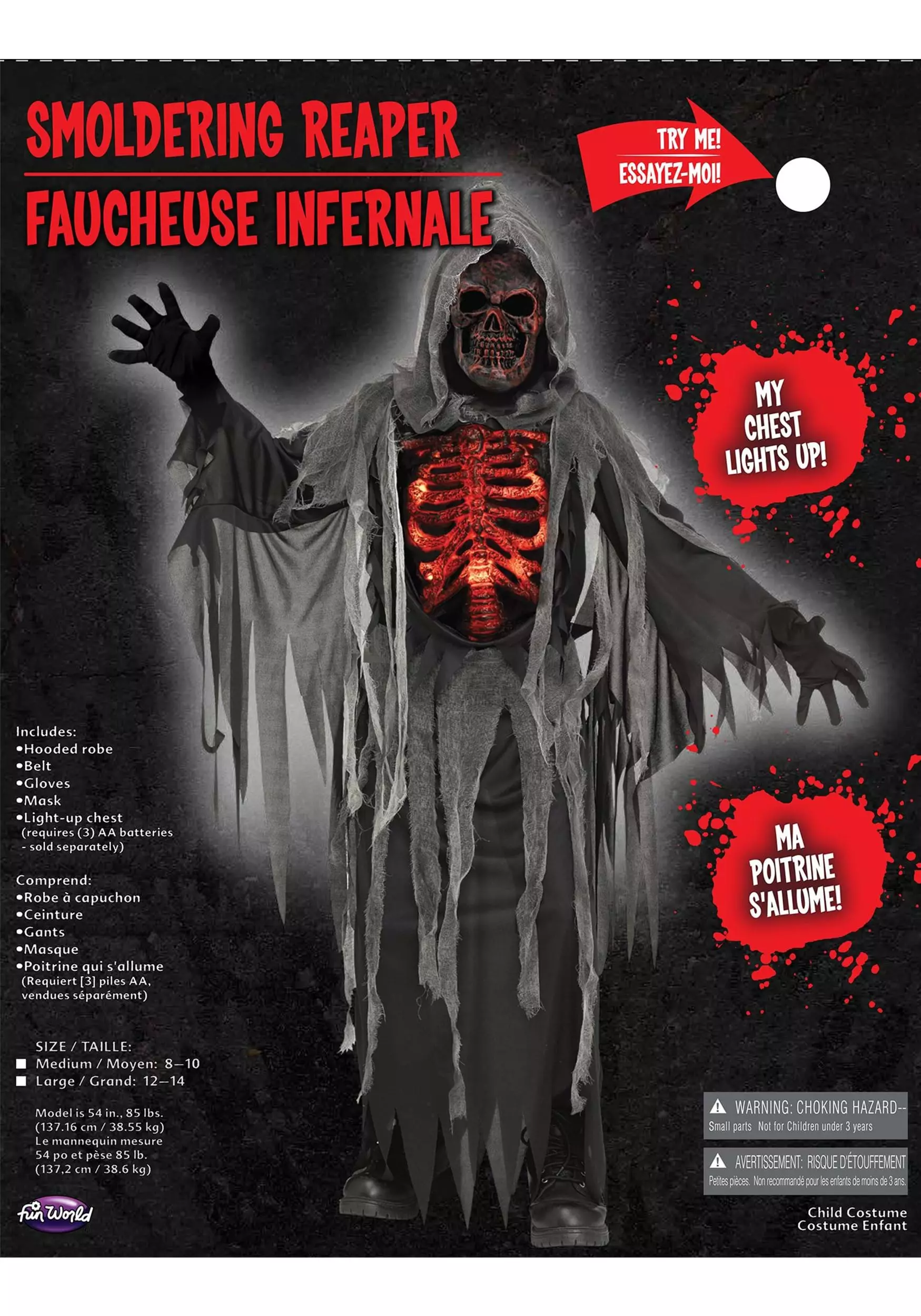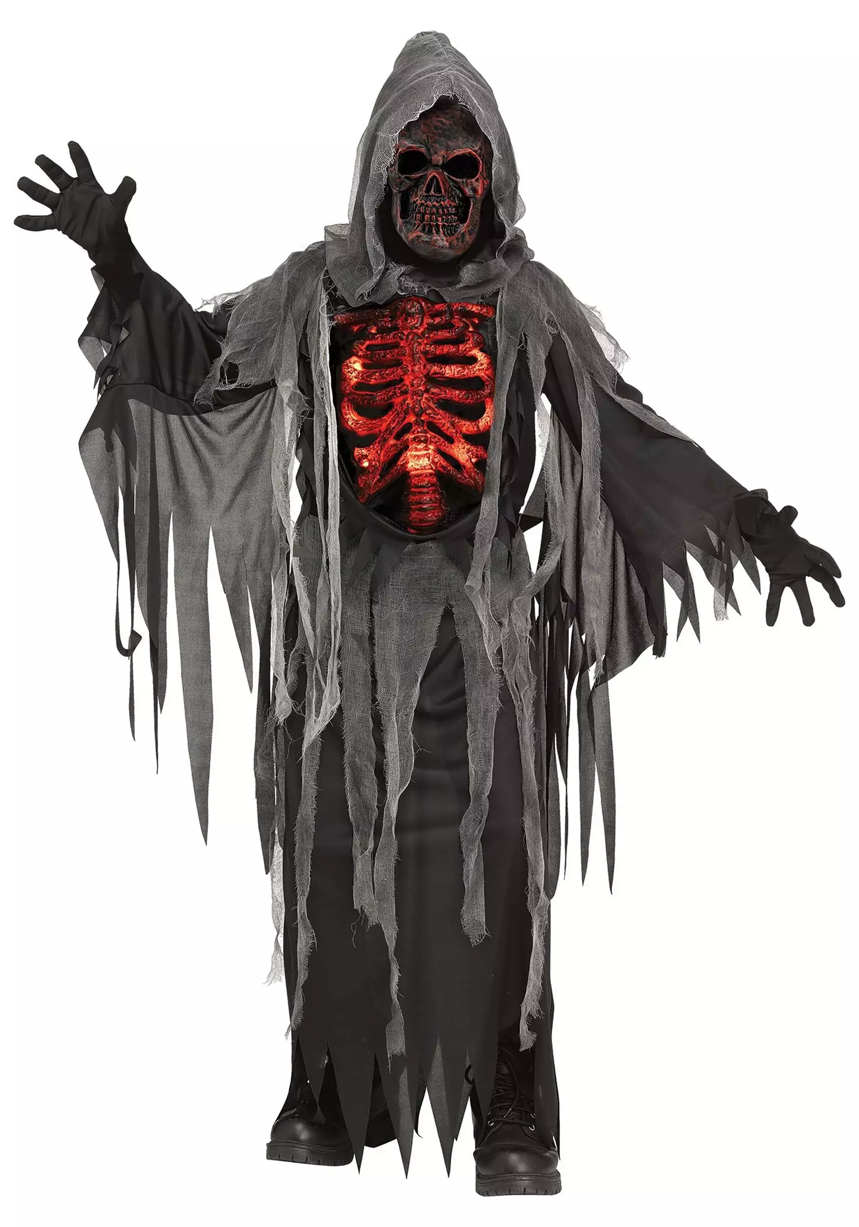 But your child has been a fright fan since they arrived in this world! Even as a very tiny infant, your baby giggled when you’d sneak up on them and scare them in their crib. They wanted to go into haunted houses as a young toddler, and the only rule they seemingly had in life was “the scarier the better.” NOTHING scares them—not a midnight viewing of The Shining, not a bunch of clowns (shudder). That’s why we think they’re ready for this Kid’s Smoldering Reaper Costume. Crafted to be totally terrifying, this look is not for the casual Halloween fan. Only serious appreciators of the darkest arts will find this look appealing and be able to pull it off this Halloween! It may be horrific, but it is also bound to win your kid a costume contest…or 10.