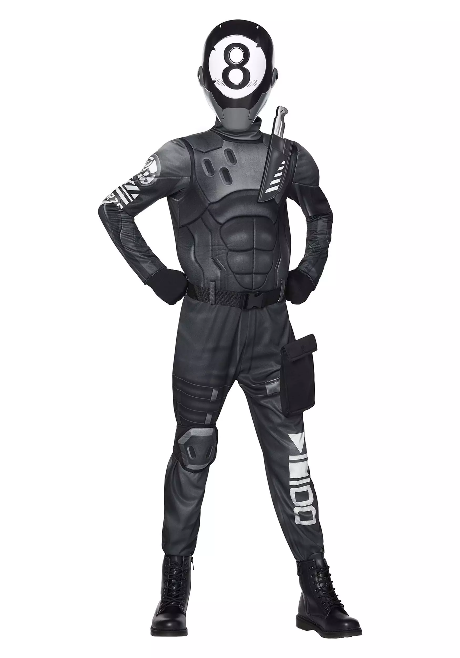 We know it is difficult to choose between 8-Ball and Scratch, but this child-sized jumpsuit will probably be enough to sway you! It is designed to match the awesome Fortnite 8-Ball costume that is available in-game, complete with printed and soft-sculpted abs and armor. Your child will be stoked when he sees this Fortnite Child 8-Ball costume.
