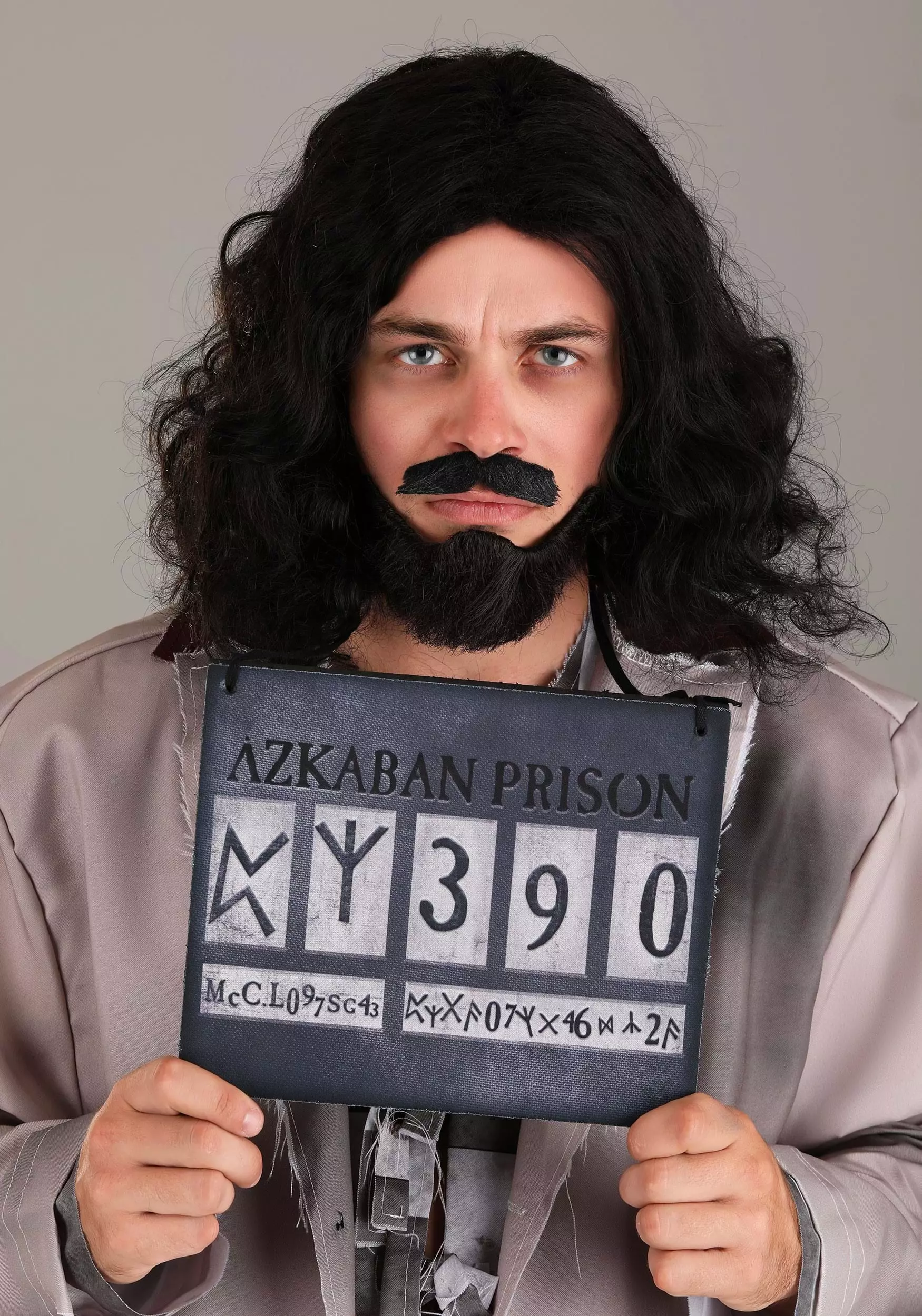 Your magical transformation will leave you looking… Well, to be honest, you’ll look pretty rough. Although, what would expect a fugitive wizard to look like? This costume has three different pieces. The overcoat jacket is made of polyester materials. It is designed to look stained and smudged, but it does have functional pockets. The attached shirt front has ties down its center while the jacket is made with a button-down center. The pants match the black/white striped shirt front. They have an elastic waistband to ensure a comfortable fit. Even escaped convicts need comfort. The included neck sign is the most important part of this costume. Without it, you’d look just like any random criminal on the run. It’s made with a foam board and a polyester cord.Â