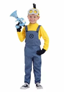 Your little one will be prepared for supervillain hijinks in this officially licensed Minions Toddler Minion Costume for Boys! The jumpsuit-style outfit fastens up the back and has a mock turtleneck collar. The sleeves, upper back, and upper chest are bright yellow to mimic a Minion’s skin tone, while the faux overall straps, torso, lower back and legs are made of denim-colored fabric. Gru’s symbol is printed on the chest over a faux pocket. Add the included yellow headpiece with its tuft of faux hair and silver goggles!Â