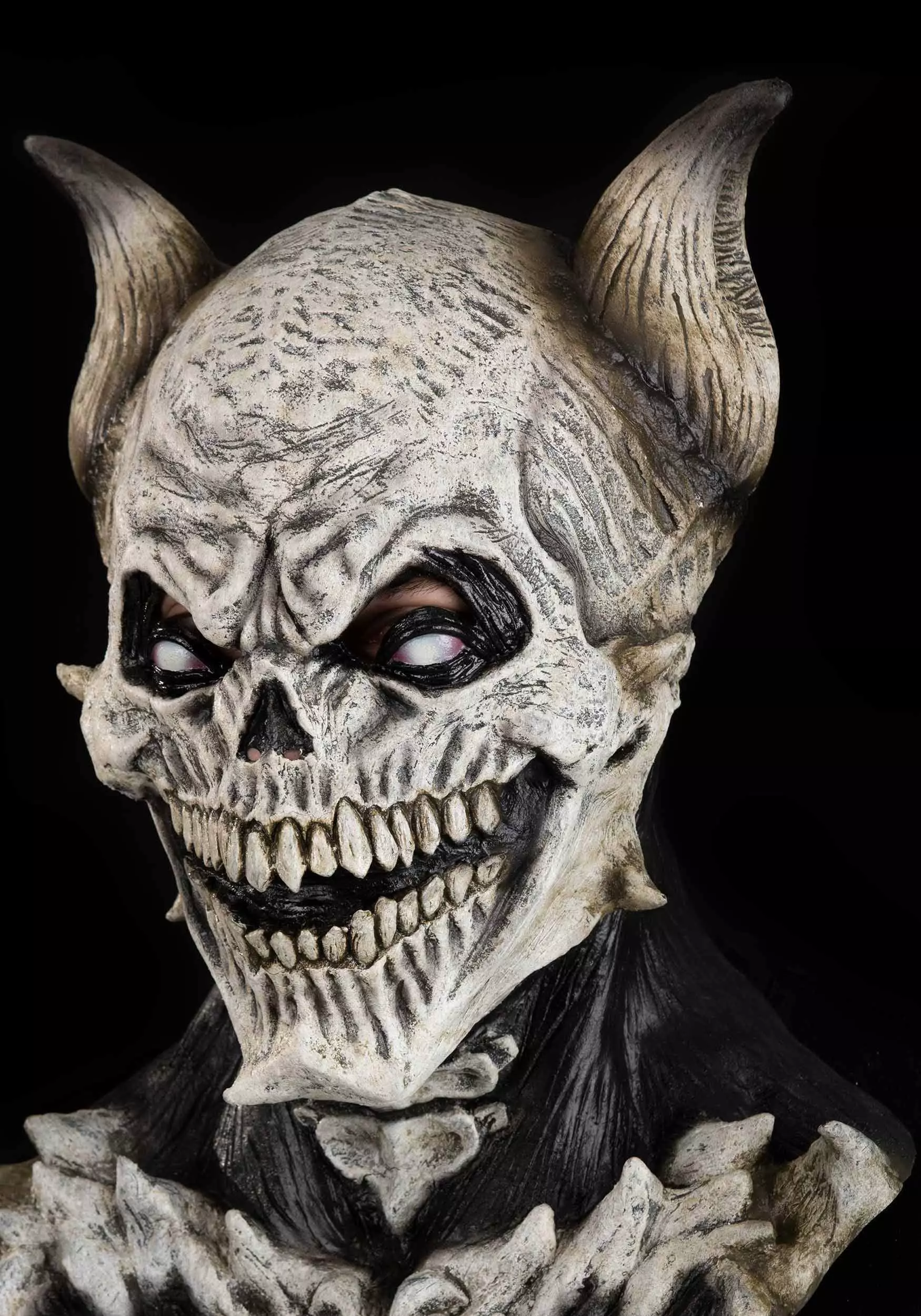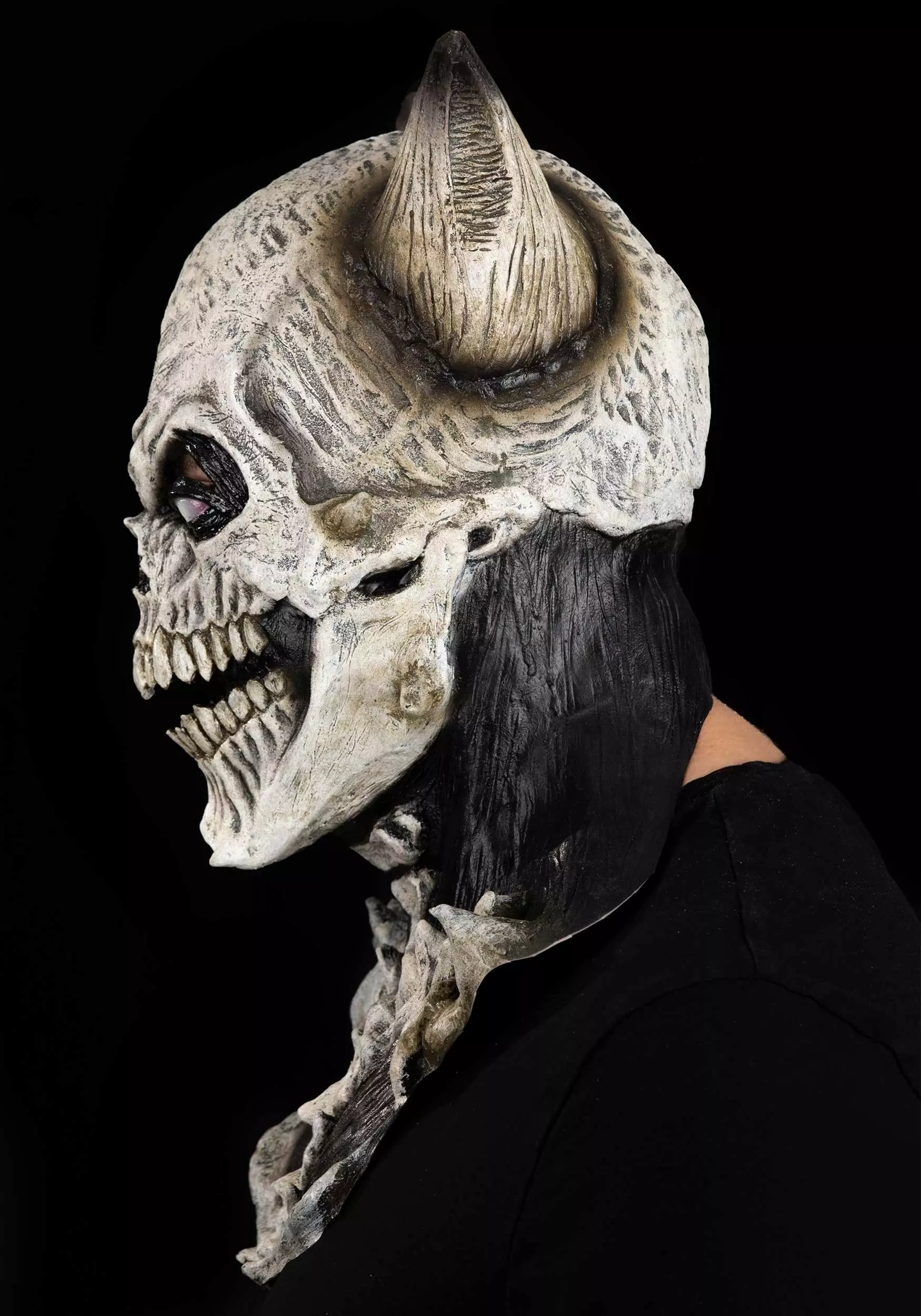 The Deathkeeper White Mask is an eerie mask, designed to turn you into the gatekeeper of the damned! The mask is made entirely out of a flexible latex material and has plenty of ghastly details molded right into it. The bones have a white, jagged appearance, and the face has an evil, malevolent look. It even has a pair of horns molded into the top of the mask.