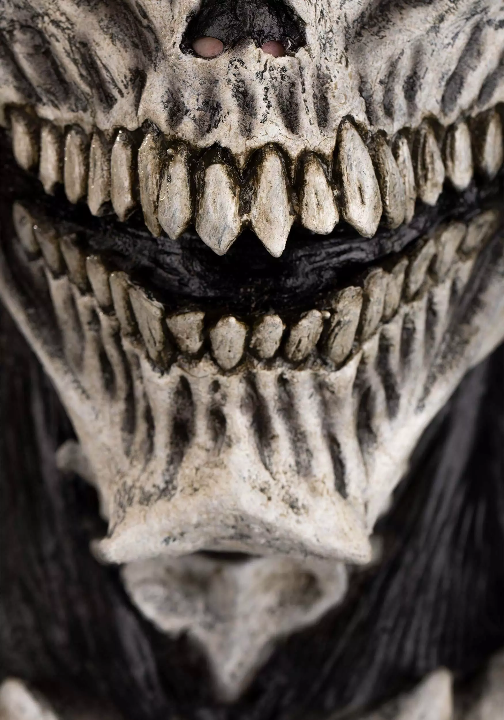 Does anyone know what Death looks like under that hood? Is it just a normal, smooth skull under there, or does he have something a little more dubious hidden? Maybe he has a big set of demon horns on top! Well, this Deathkeeper Mask answers that question with a frightening take on the Grim Reaper!