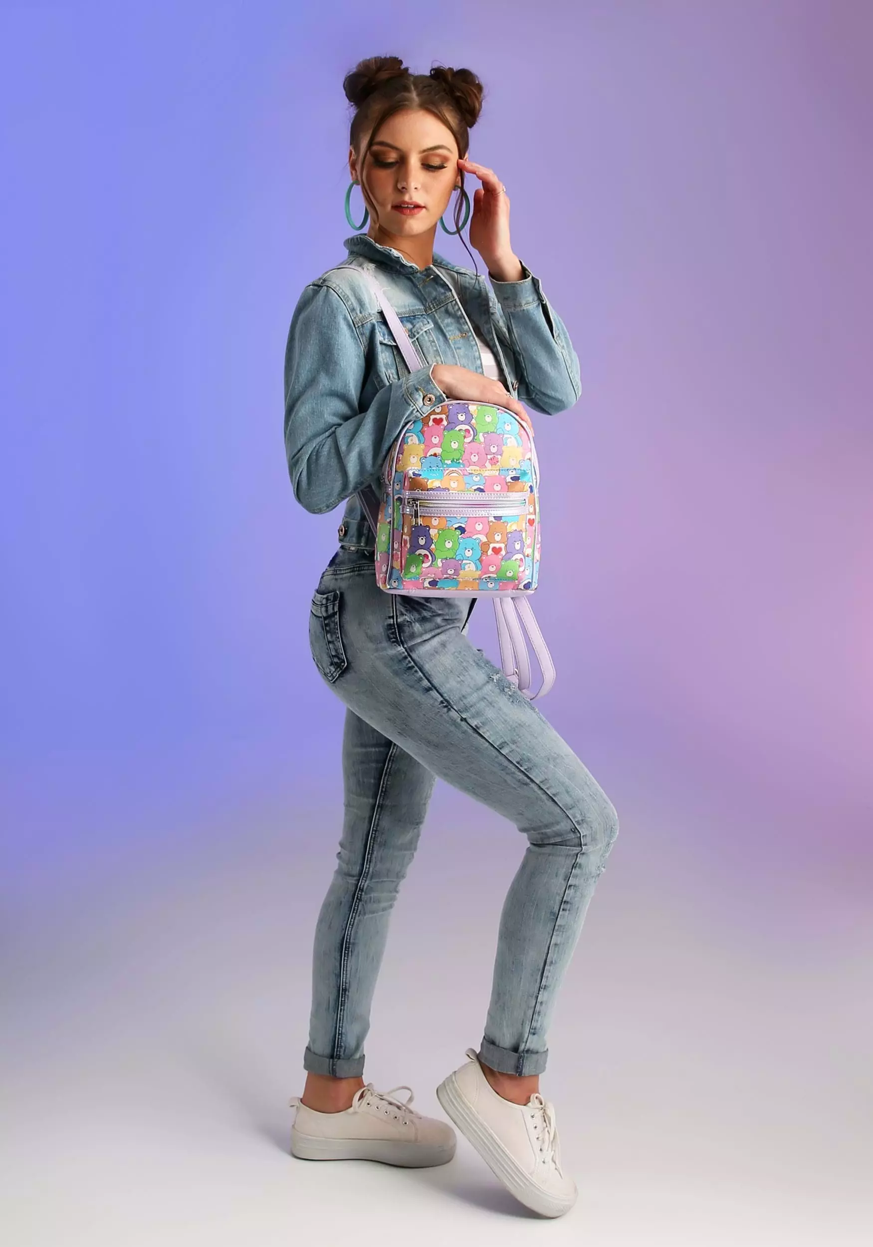 The Care Bears have a secret weapon! When the villains of the world try to spread their evil ways across the land, the bears band together and perform the Care Bear Stare. Their belly badges light up and they stave off the latest evil scheme! Now, the Care Bears are banding together once again… on a backpack! This Care Bears All Over Print Mini Backpack combines the powers of the Care Bears into an amazing accessory that you can bring on any adventure.