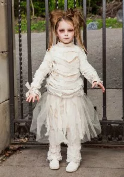 Anyway, your kiddo is ready for the hunt for sweets in this Mummy costume. With this muslin wrapped shirt and a combination muslin and tulle skirt, you’ll have no problem mummifying your little one. With leg warmers and extra accent strips, you’ll be able to finish this ensemble with just the right touch. Join in with a mummified look of your own in order to have the whole family head out for a creepy night jaunt around the pyramid together. Just be sure that you get enough candy to ease your tyke’s afterlife needs. You do not want to get cursed!