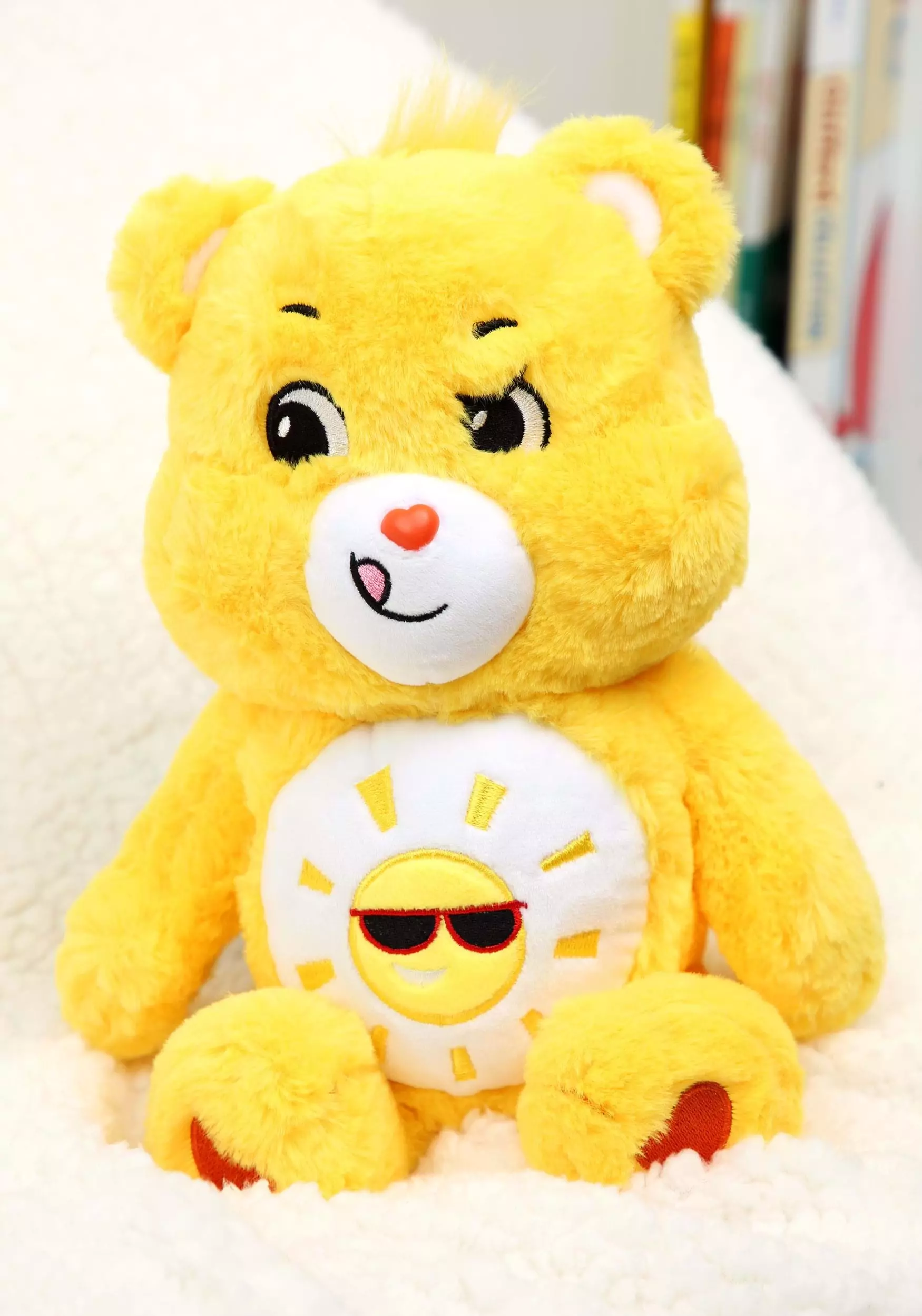 Spread some of their sweet and silly personality around when you bring this Care Bears Funshine Bear Medium Plush home! This adorable trickster measures 14 inches tall and features Funshine’s signature sunshine belly badge. With an embroidered facial expression that perfectly captures Funshine’s constant debate over whether to trick or treat a person in need, this officially licensed plush prop is a great addition to any collection. Made to be super-soft and huggable, Funshine is ready to keep spirits up with a quick squeeze while carried with a Halloween costume or snuggled through a stormy night.