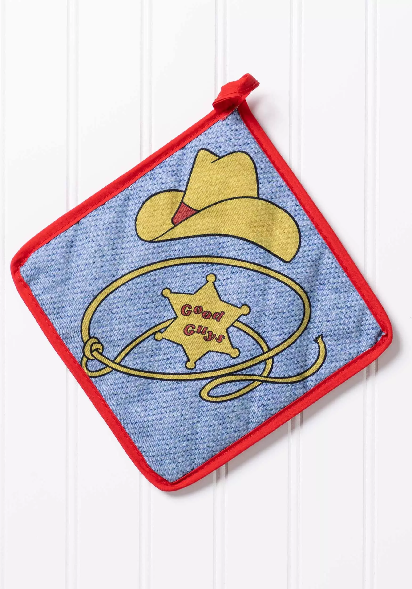 - Potholder & oven mitt have fabric loop at corner for hanging