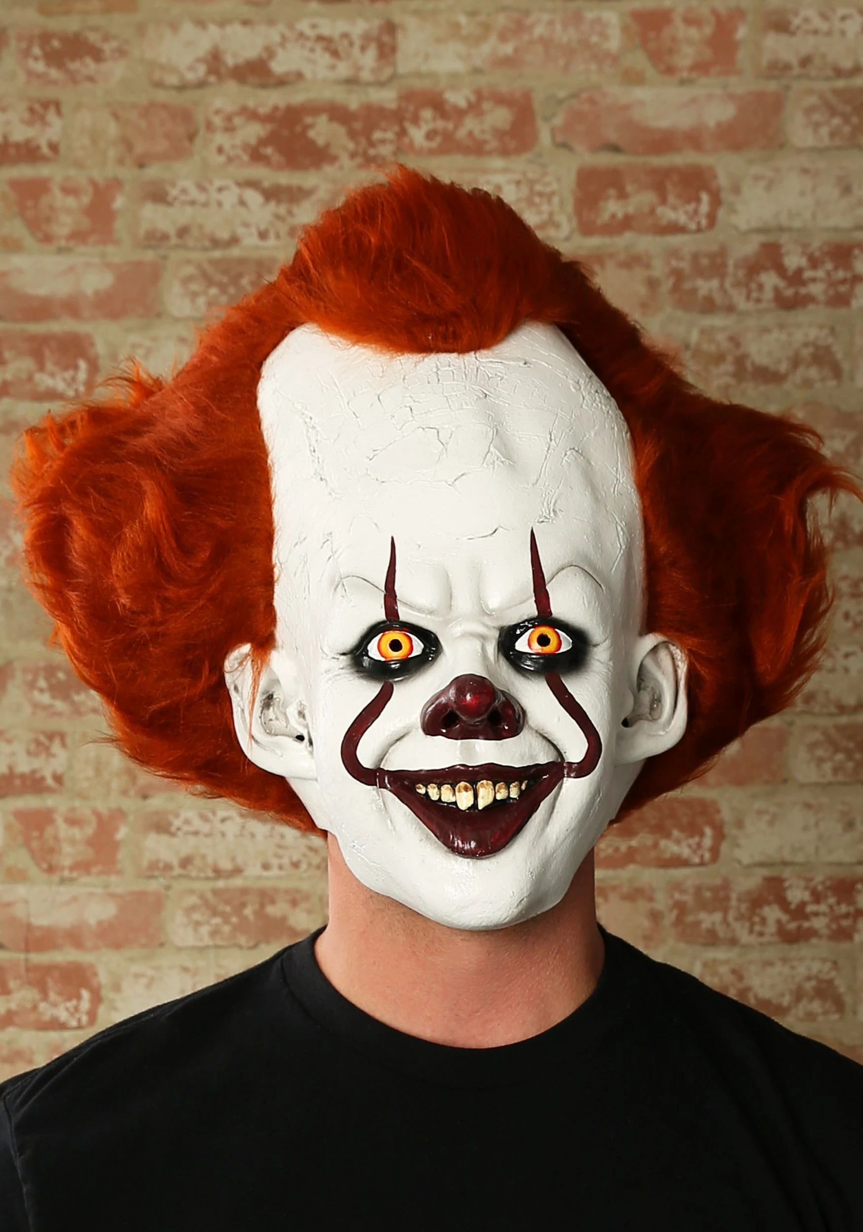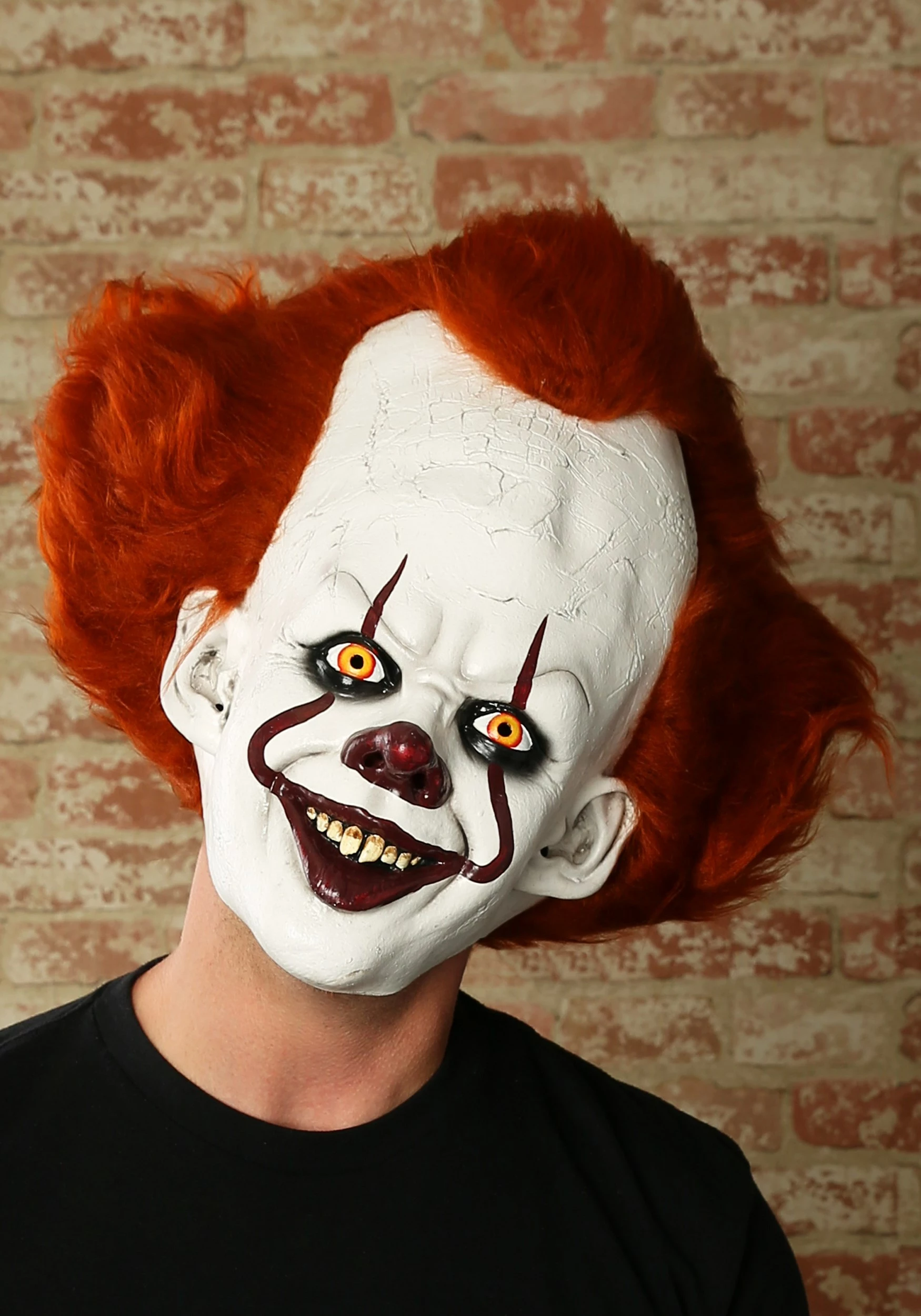 This Supreme Pennywise mask is a high-quality look that’ll look like it’s straight out of the sewers of Derry. The face is rich with details that eke out the facial expressions as well as the cracking makeup along the receding hairline. Red eyes and cracked teeth make you shiver down to your liver. Faux hair sprouts from the latex, taking the disturbing realism a step further. Covering the whole head, this mask will give you a hint of what it’s like to be a timeless entity that exists solely to spread fear.Â