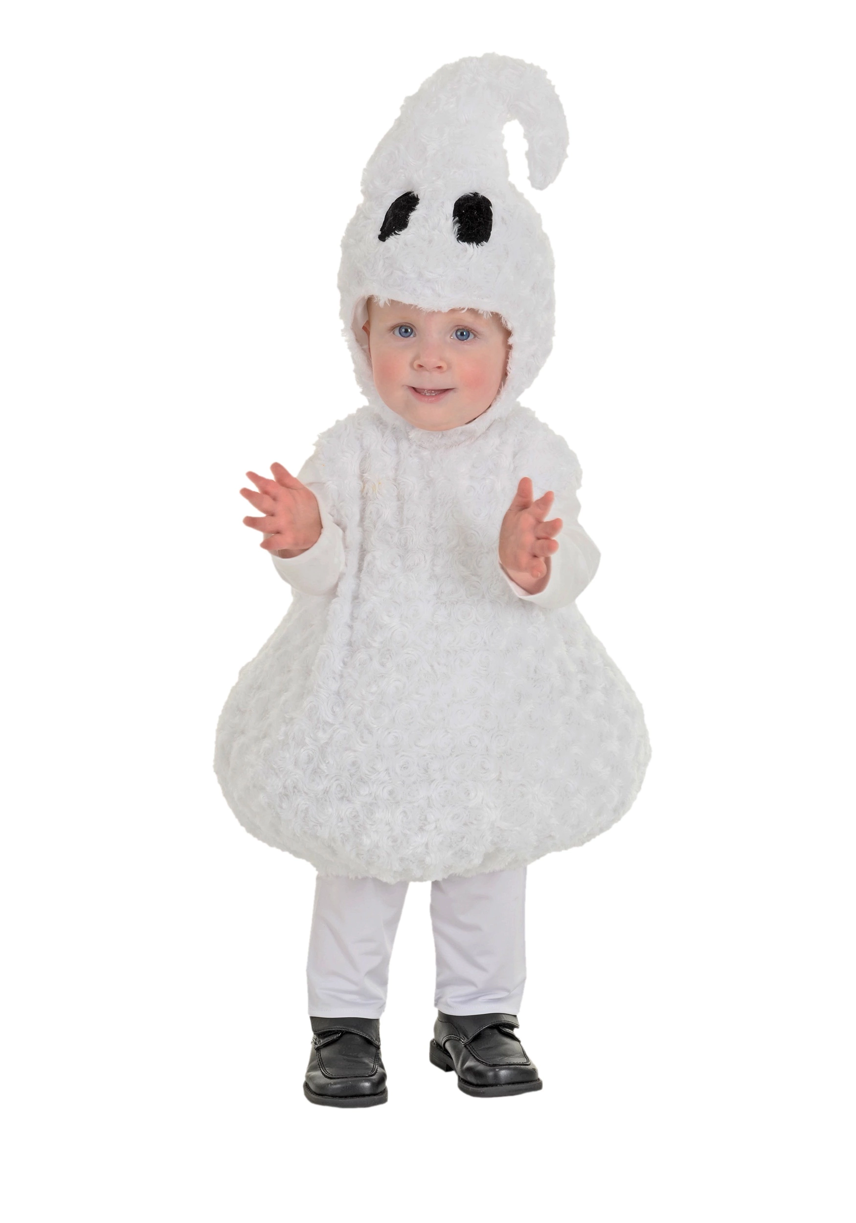 Aha! You must be the great hero whose arrival was foretold long ago. The one who’s braved the wail of the banshee, the howl of the djinn, and the screams of a thousand nameless specters? Well, you’re every bit as brave as they said you’d be, considering that you’ve handled all that and you’re still interested in this deceptively cute Toddler Ghost Costume!